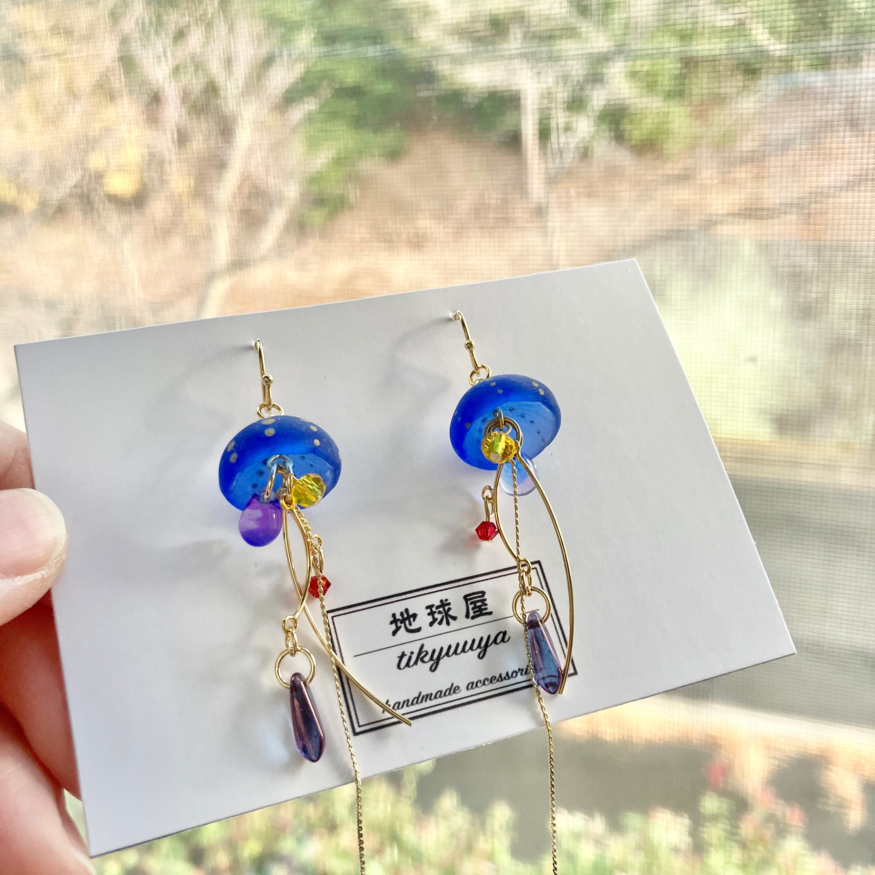 海月をモチーフにしたゆらゆら揺れる耳飾り。