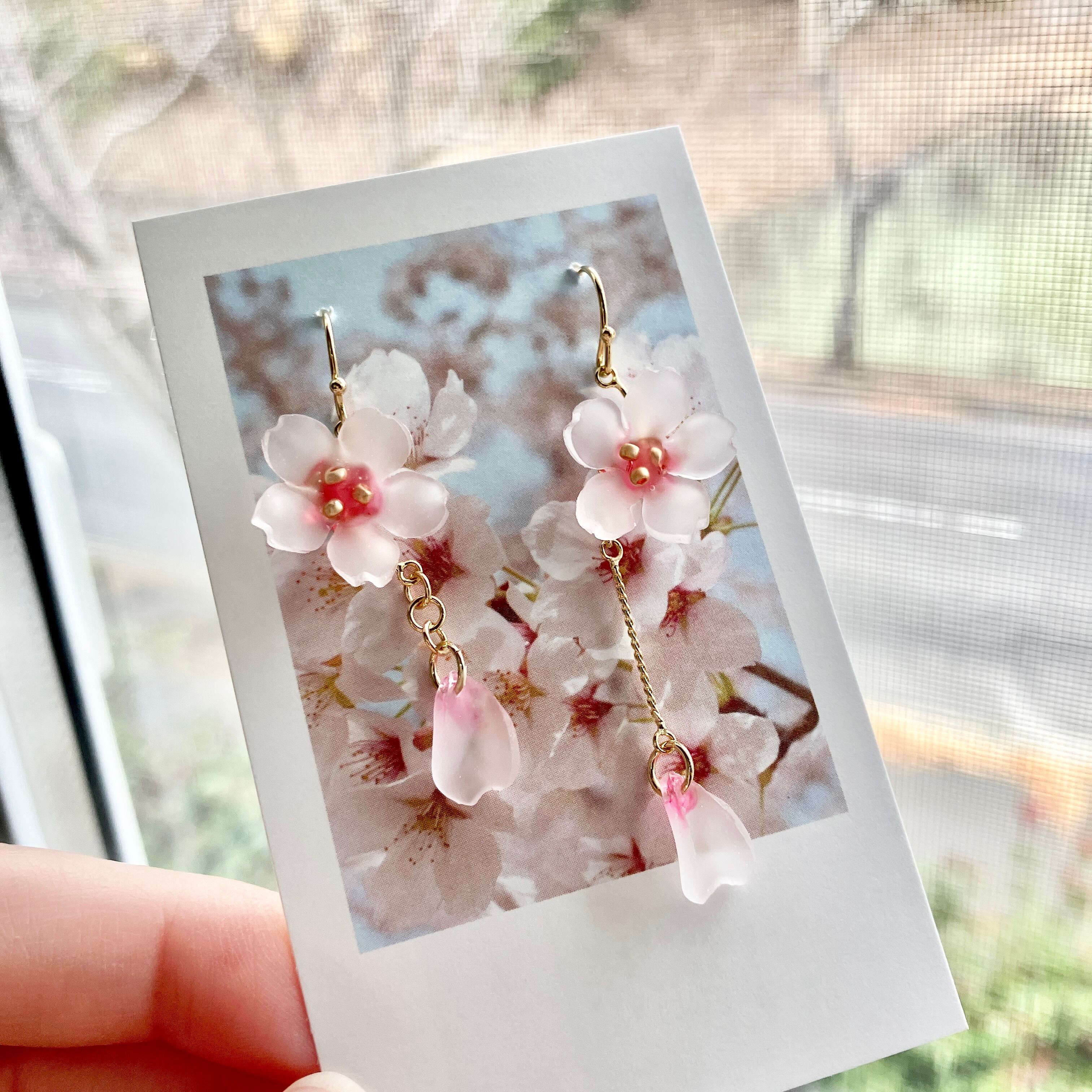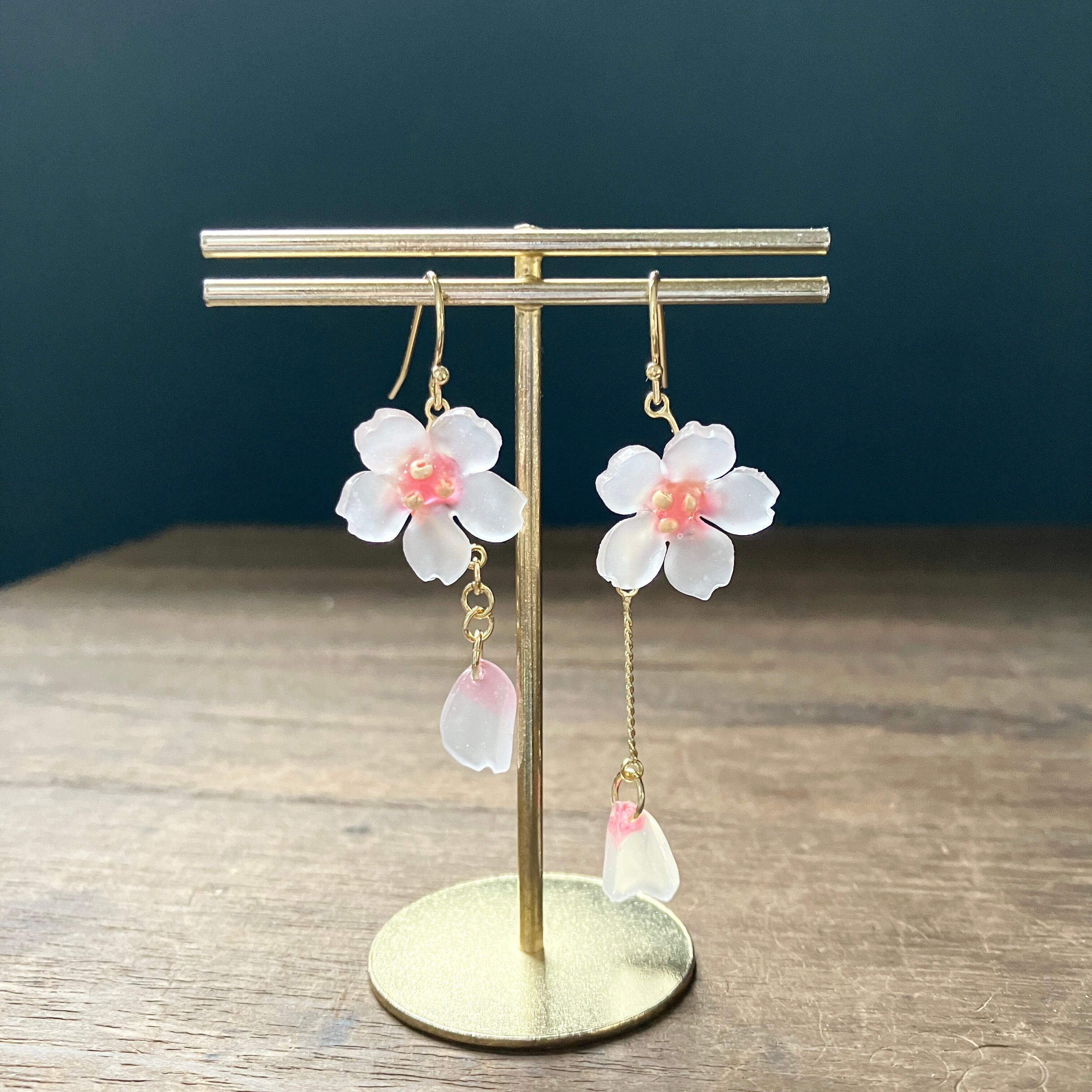 レジンで桜のふんわりとした花とゆらゆら揺れる花びらを作りました。