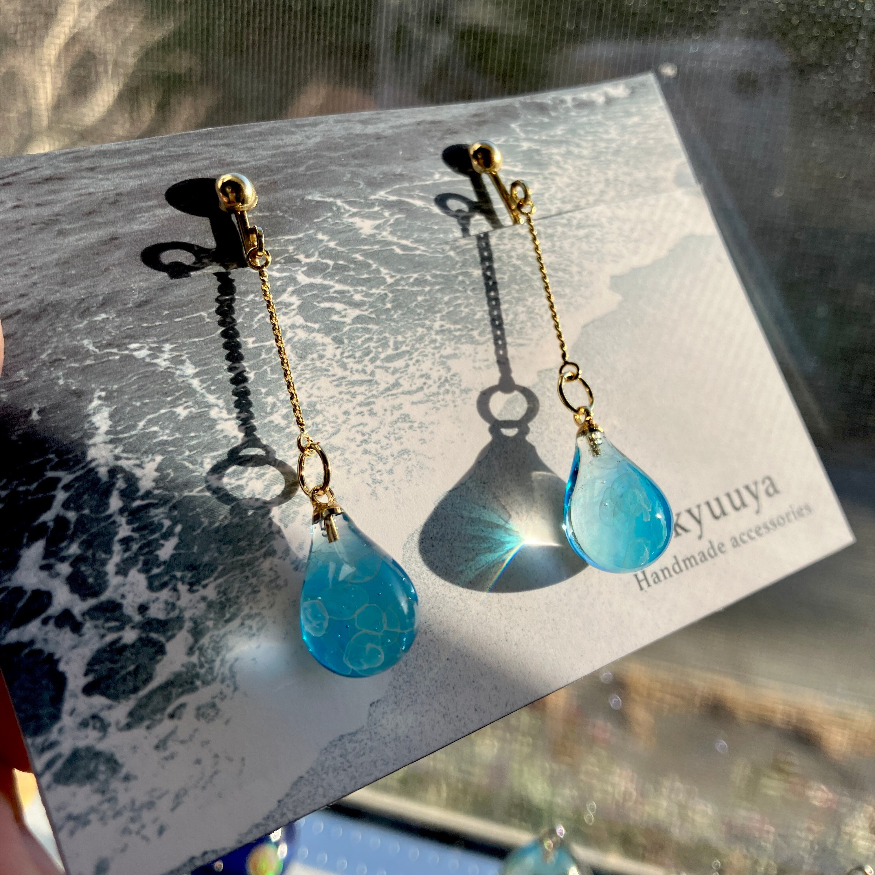 ゆらゆら 小さな雫イヤリング「アクアリウム」