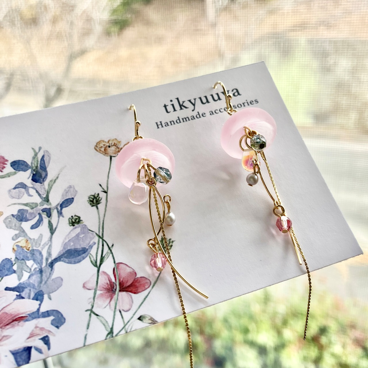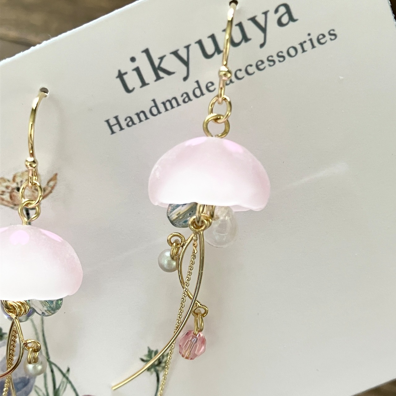 桜と海月をモチーフにしたゆらゆら揺れる耳飾り。