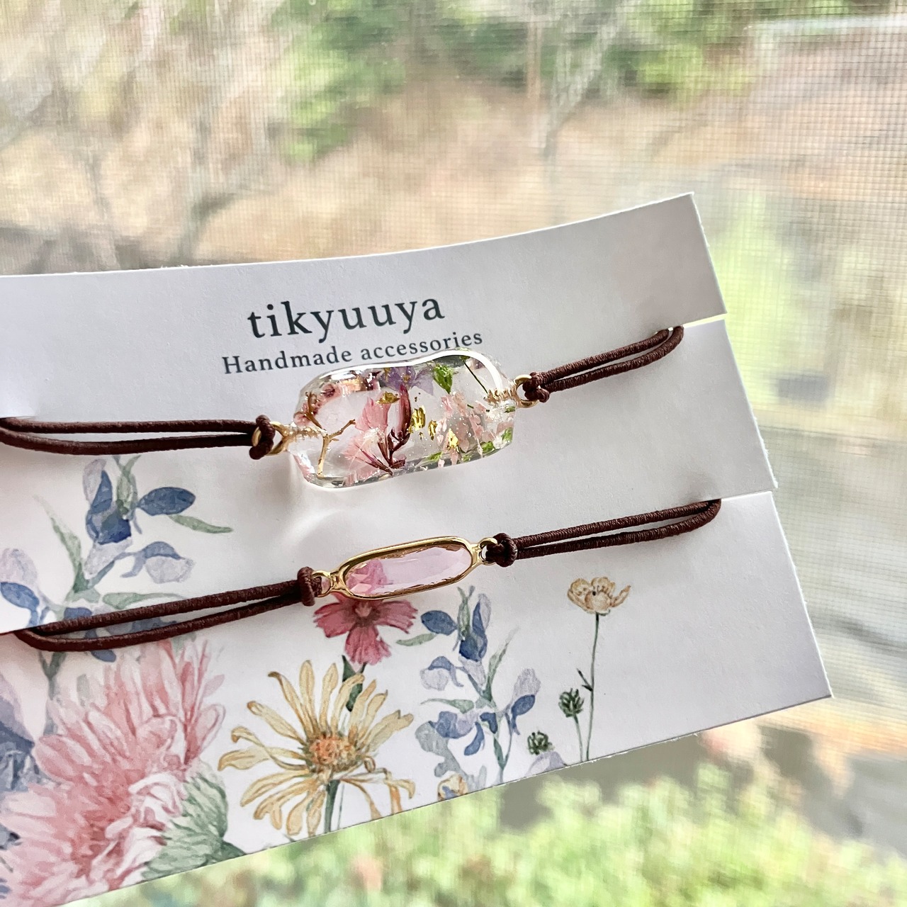 ガラスチャームのシンプルなヘアゴム ブレスと一緒に重ねづけにおすすめな2色セットです^ ^