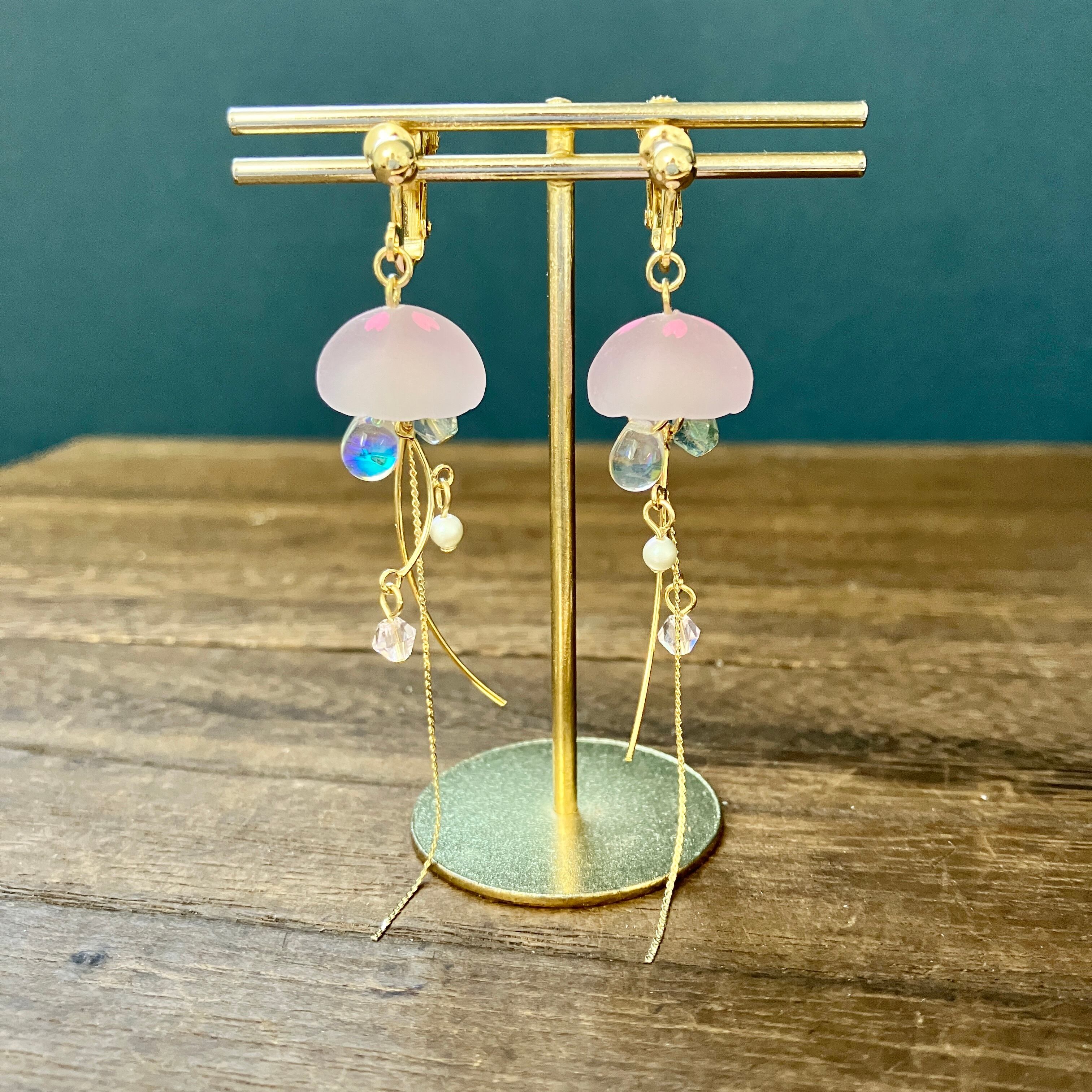 桜と海月をモチーフにしたゆらゆら揺れる耳飾り。
