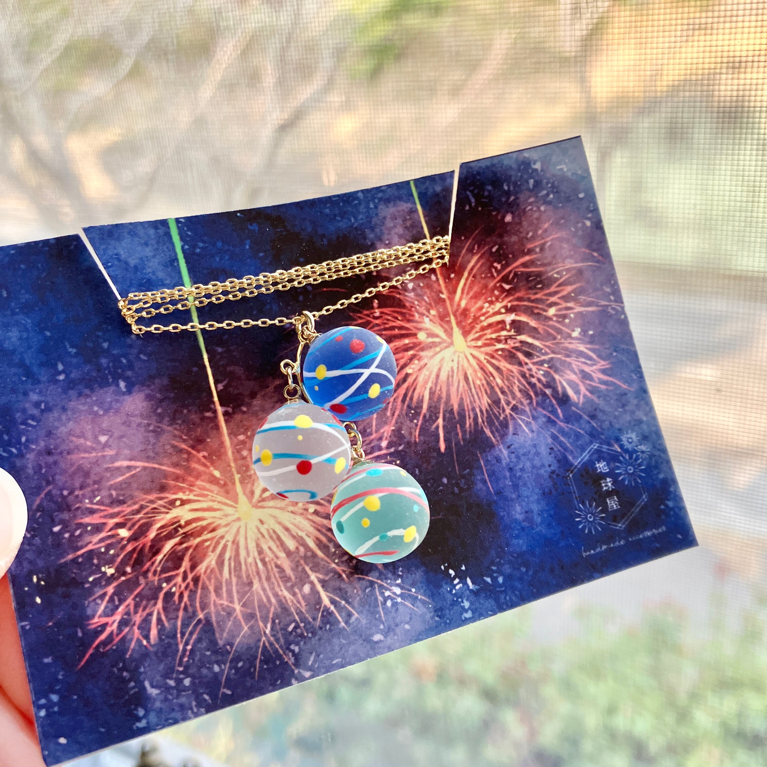小さな水風船を3色組み合わせてネックレスに仕立てました。
