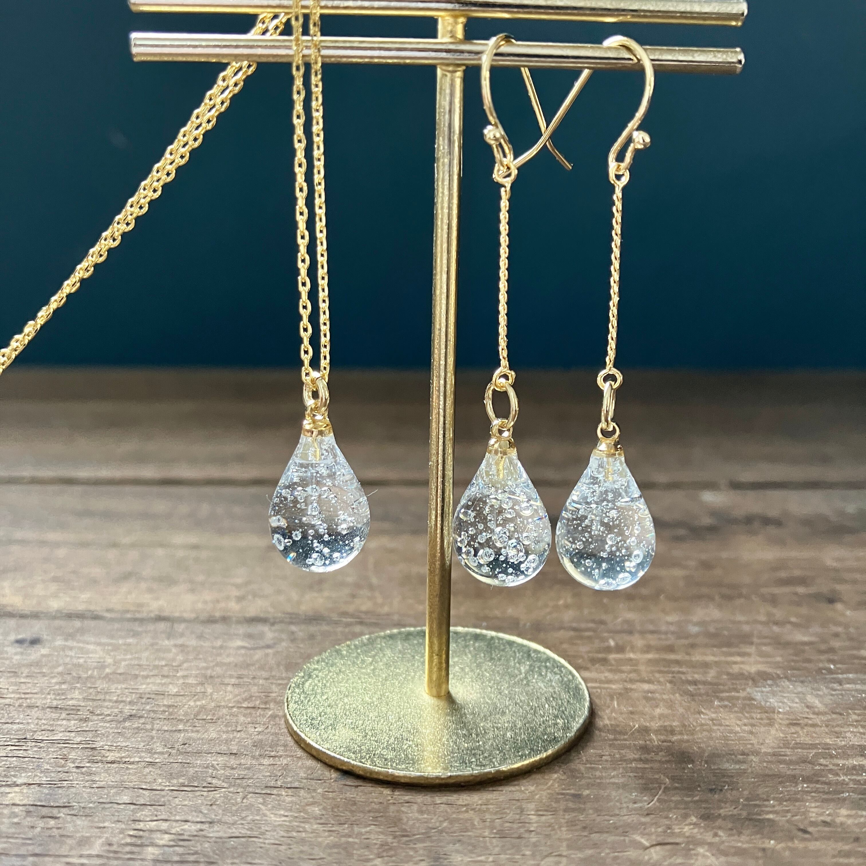 小さな雫ピアス&ネックレス しゅわしゅわ