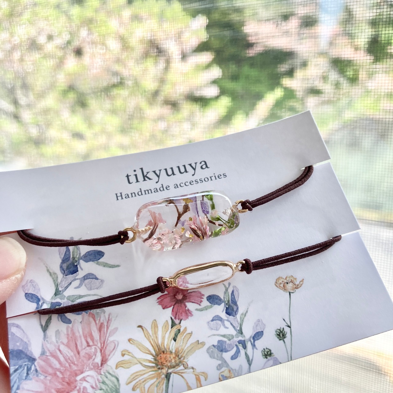 透明感溢れるモチーフに優しい色のお花を閉じ込めました。