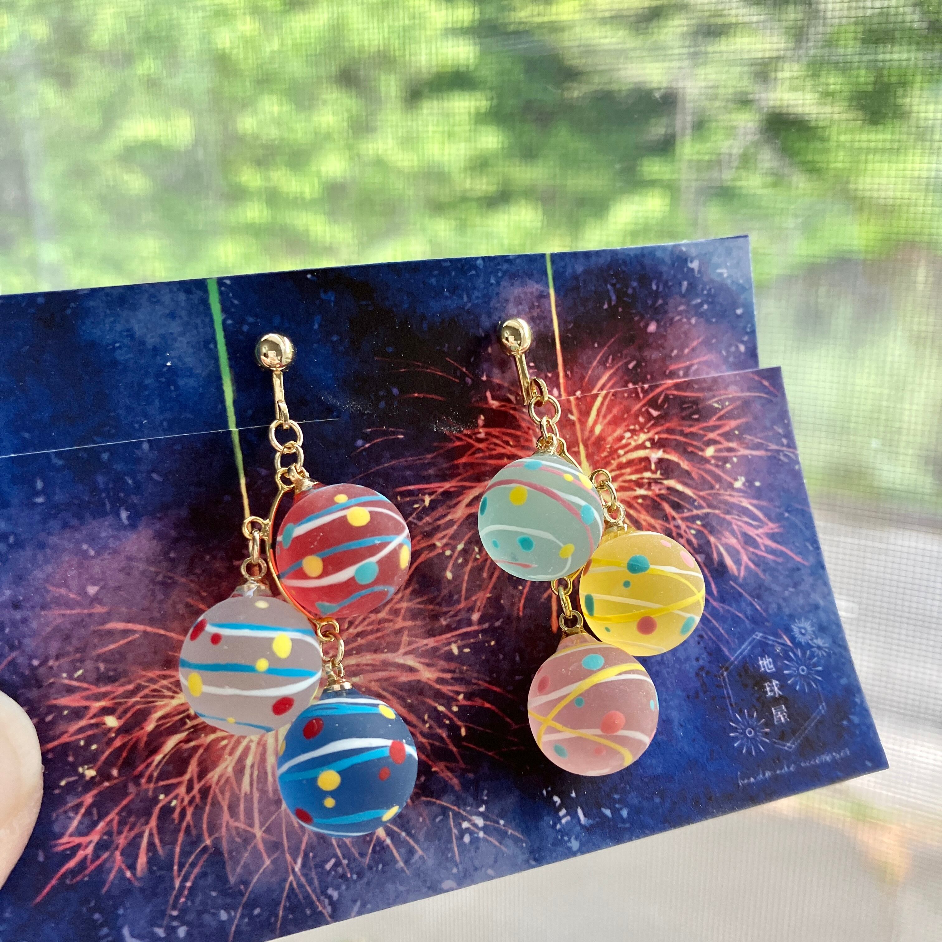 小さな水風船3連イヤリング(マット)