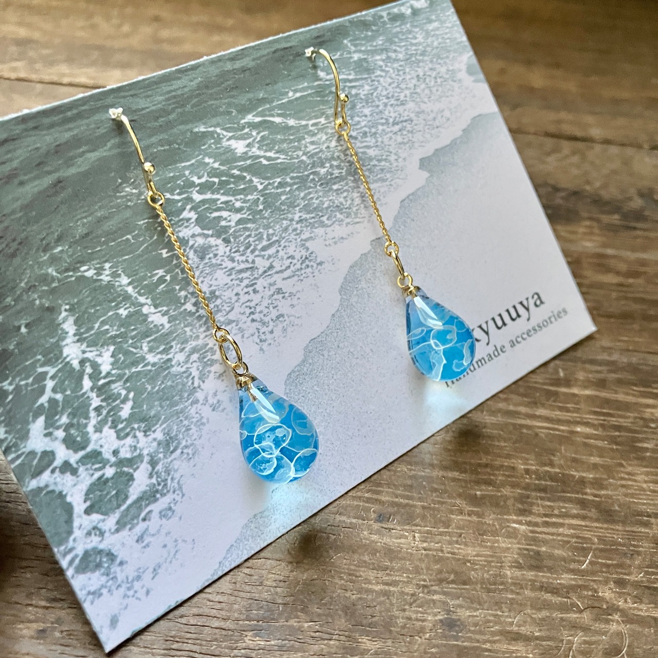 ハンドメイドのため、少し歪な雫です。