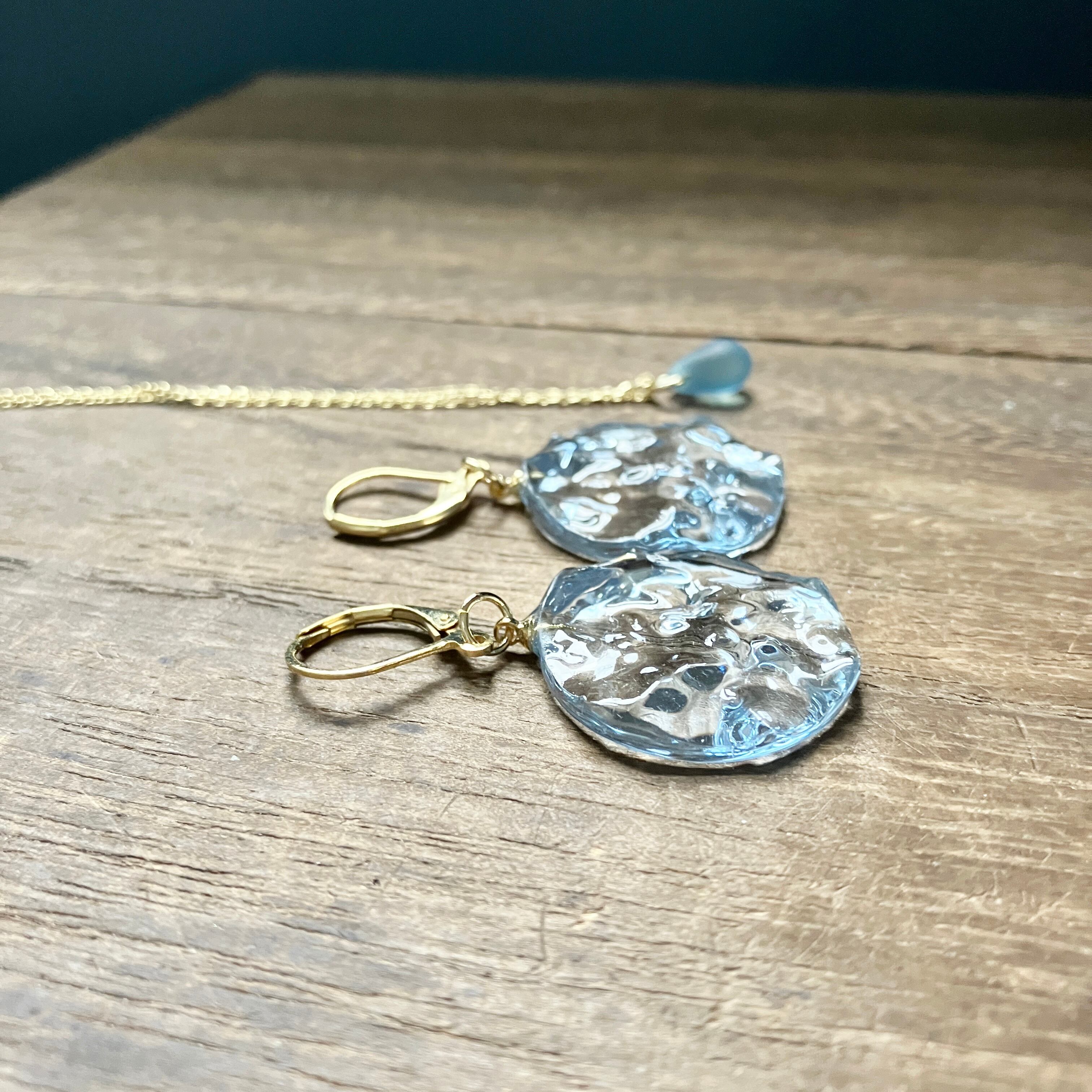 水面ピアス&ブルーグリーンのチェコビーズネックレス