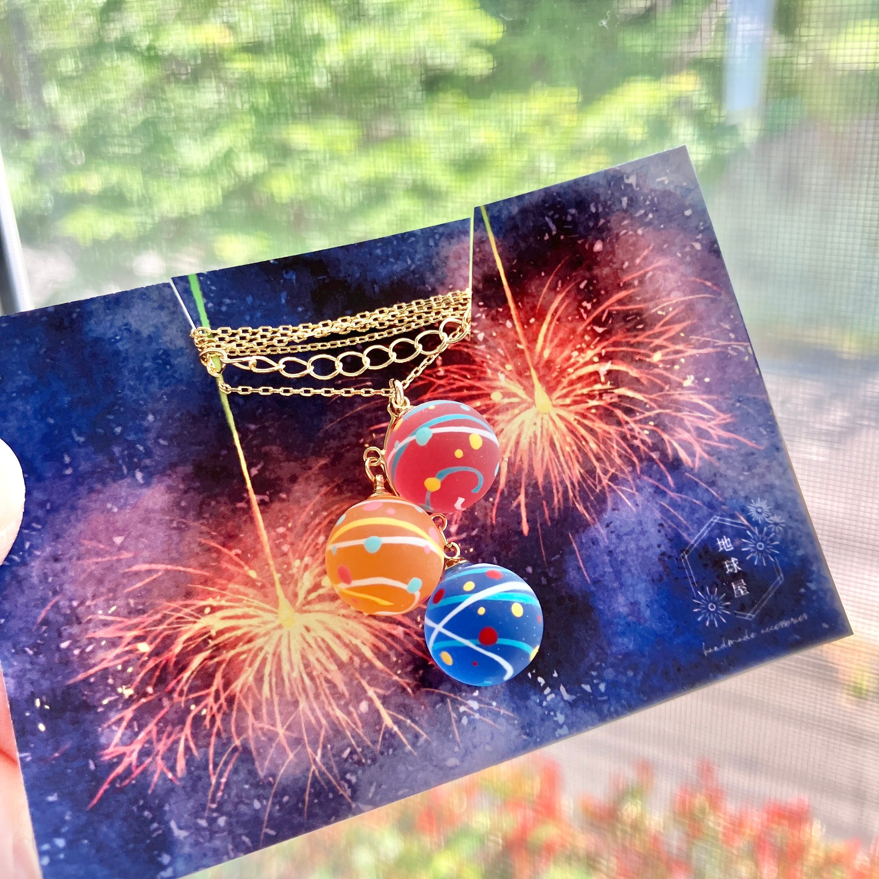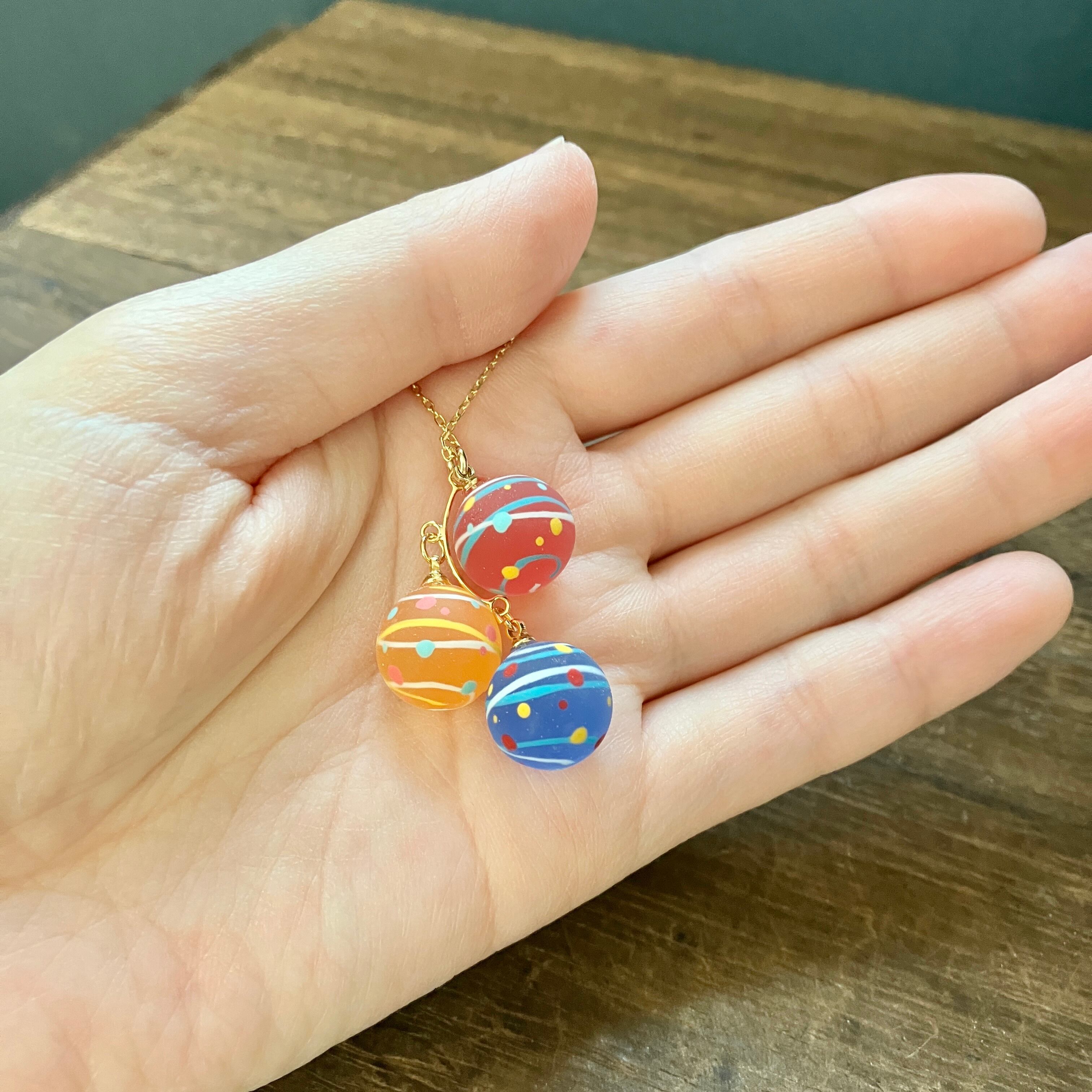 小さな水風船を3色組み合わせてネックレスに仕立てました。