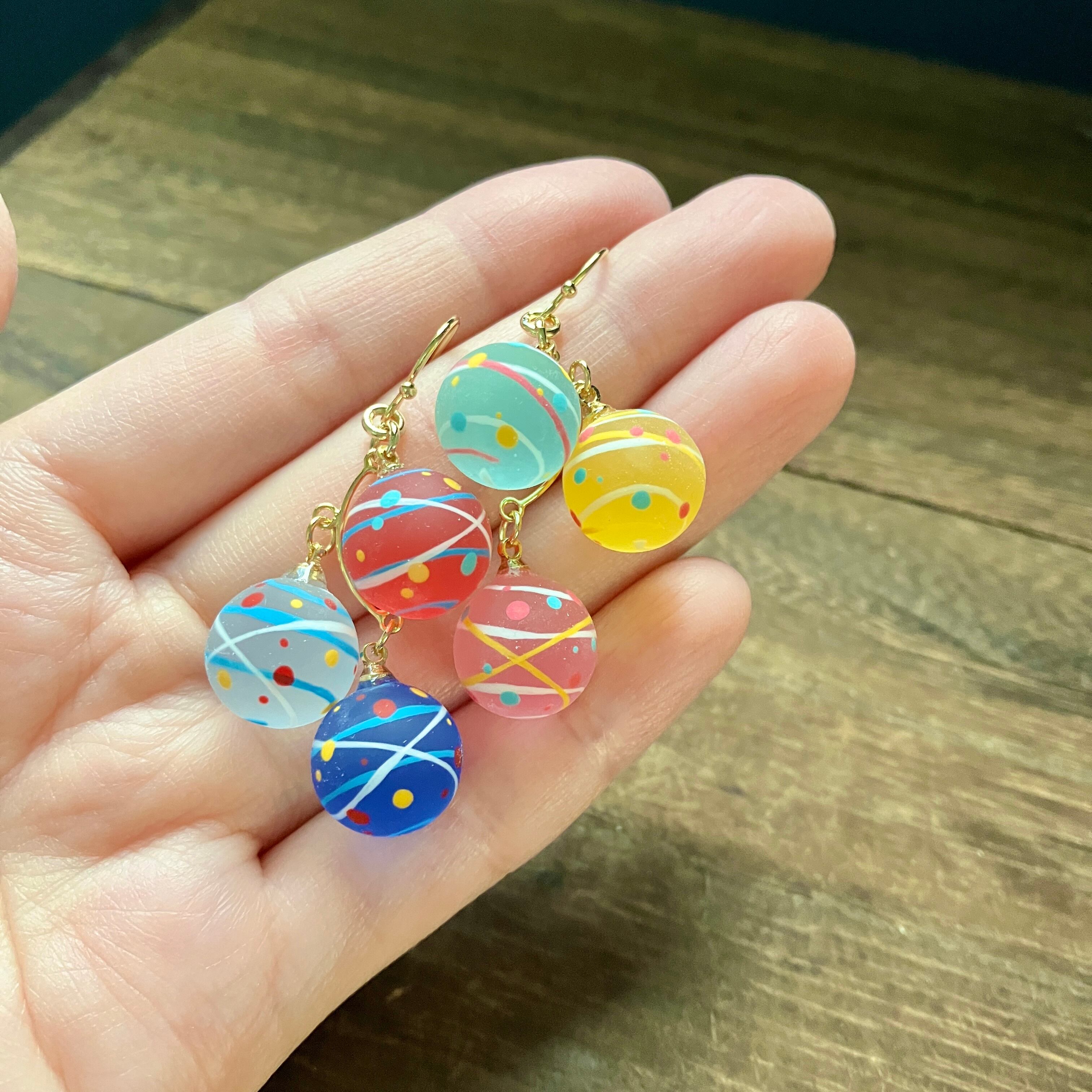 12ミリの小さな球体にヨーヨー模様を手描きしました(^^)