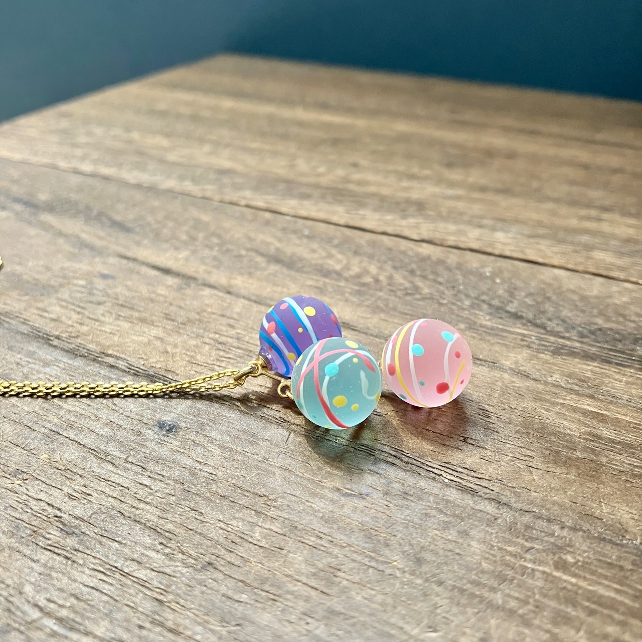 小さな水風船を3色組み合わせてネックレスに仕立てました。