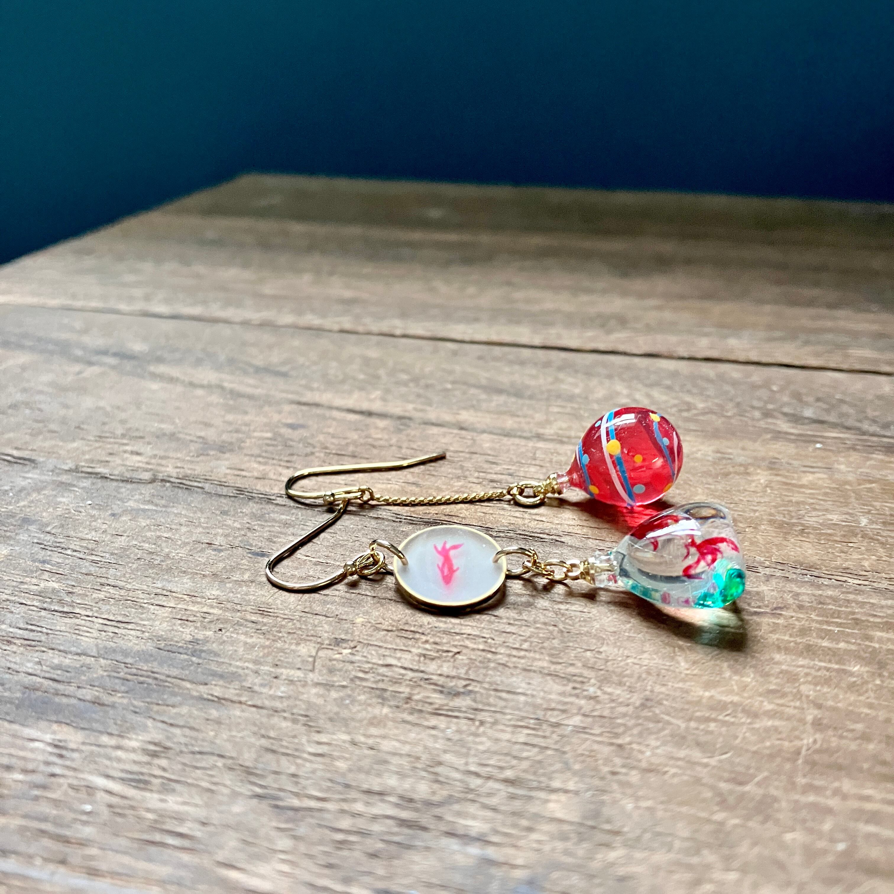 小さな水風船とポイ付きの金魚すくいモチーフに涼しげな世界を閉じ込めました(^^)