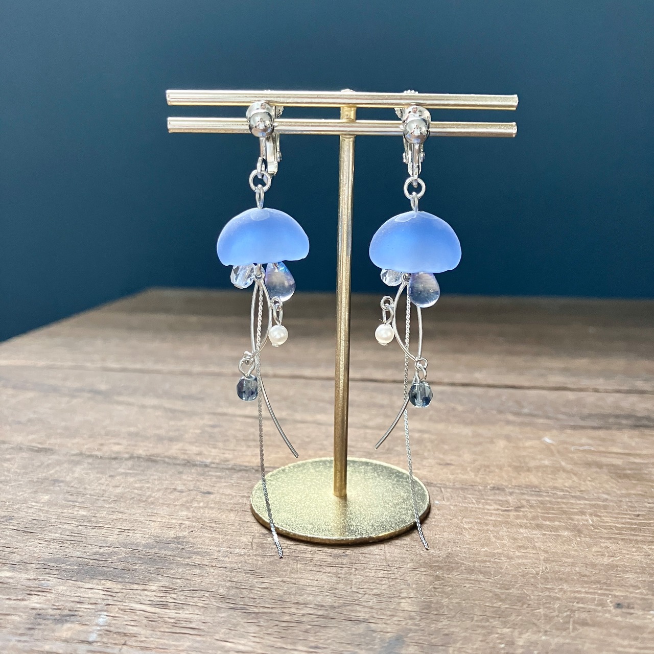海月をモチーフにしたゆらゆら揺れる耳飾り。