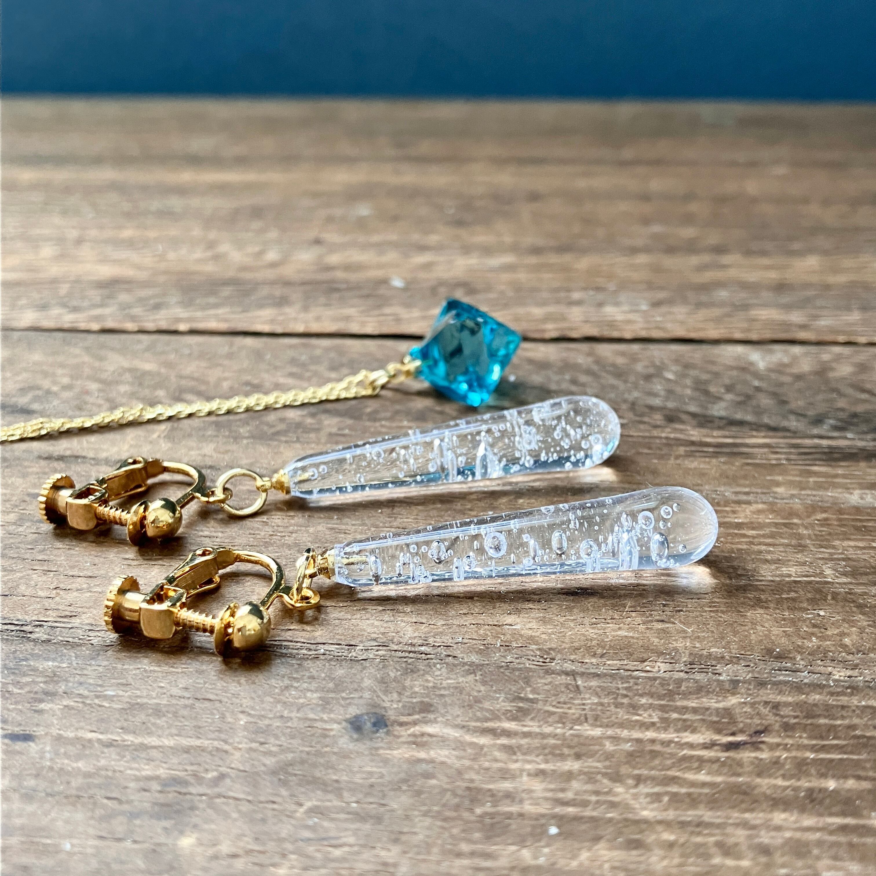 ドロップイヤリングと鉱石ネックレス 海のかけら