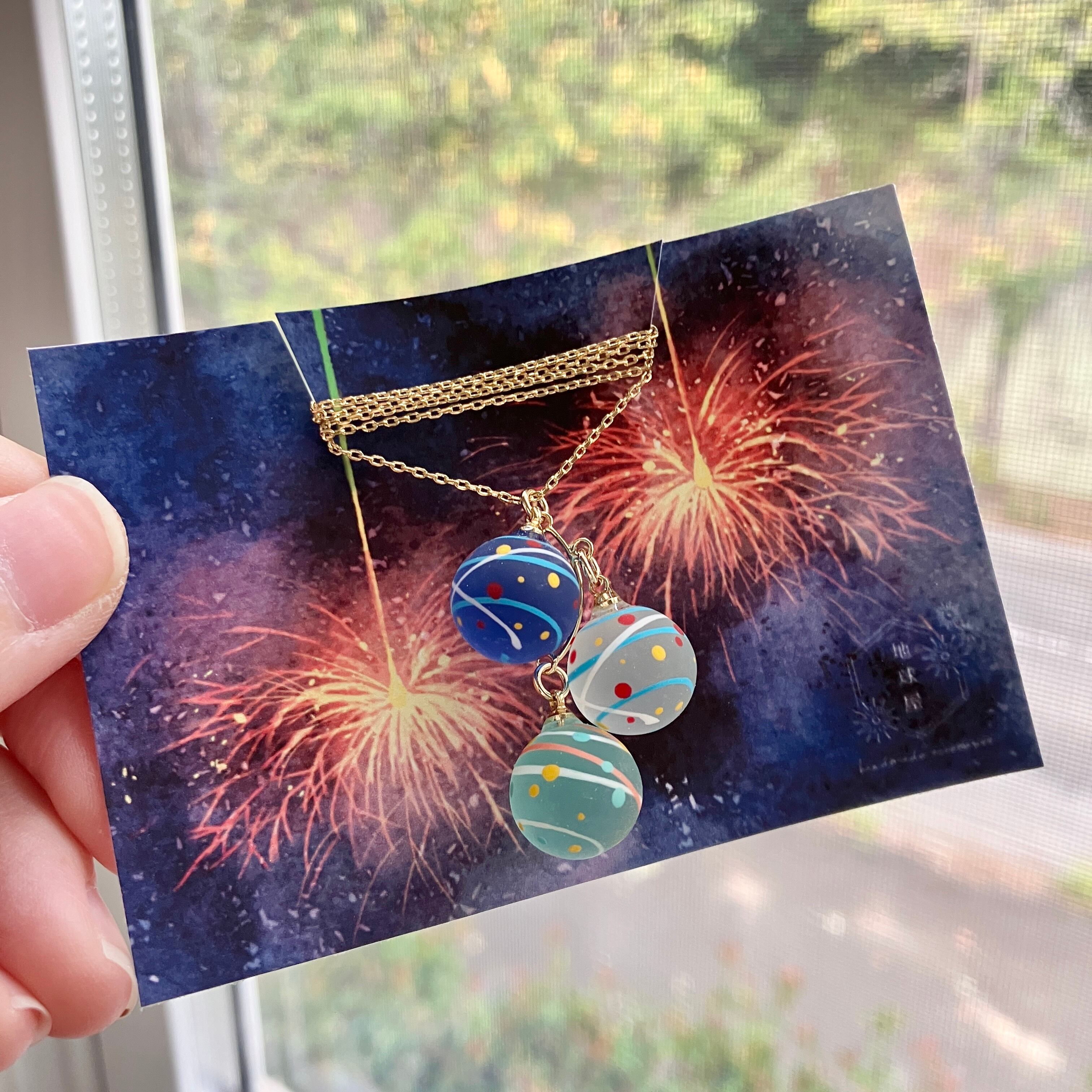 小さな水風船を3色組み合わせてネックレスに仕立てました。