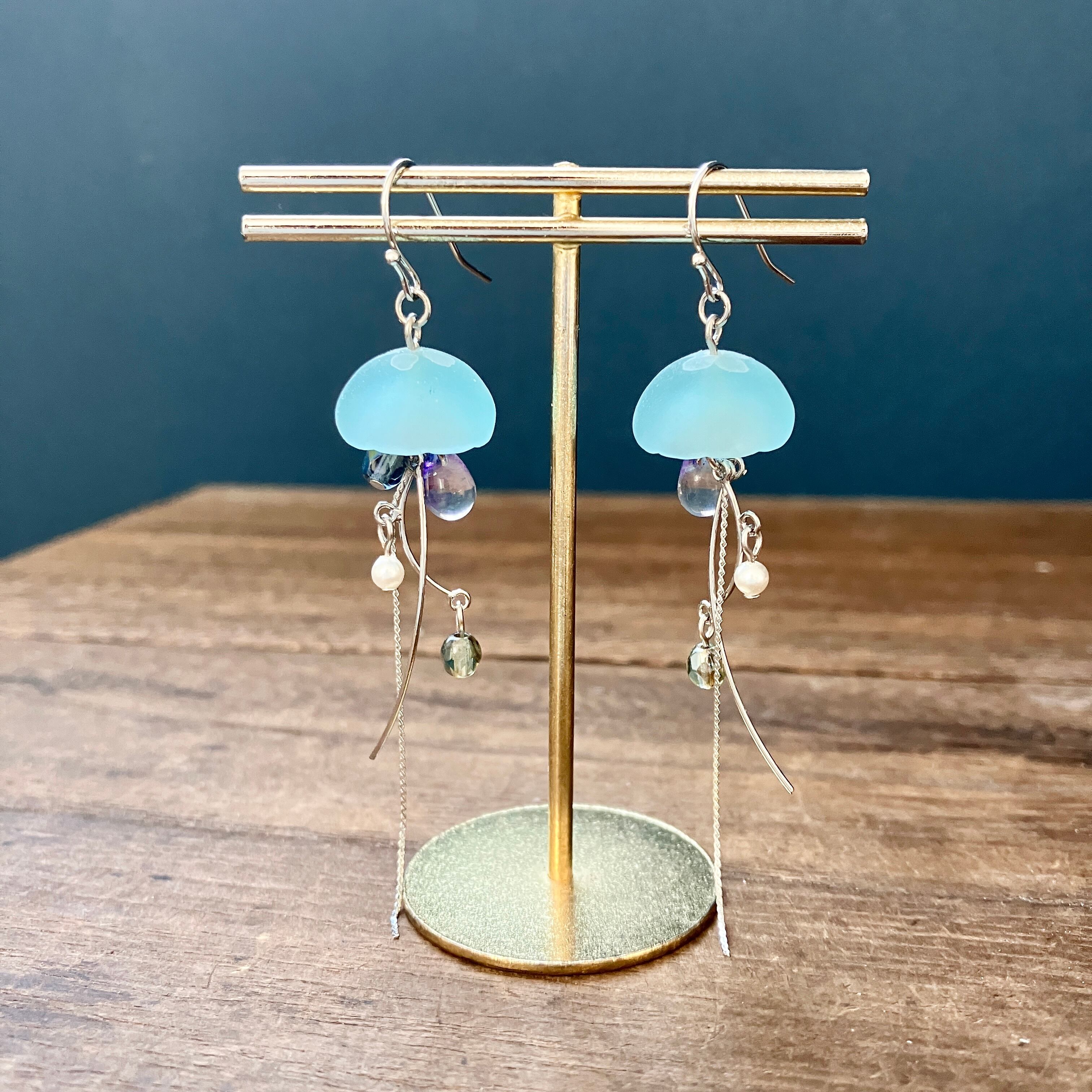 海月をモチーフにしたゆらゆら揺れる耳飾り。