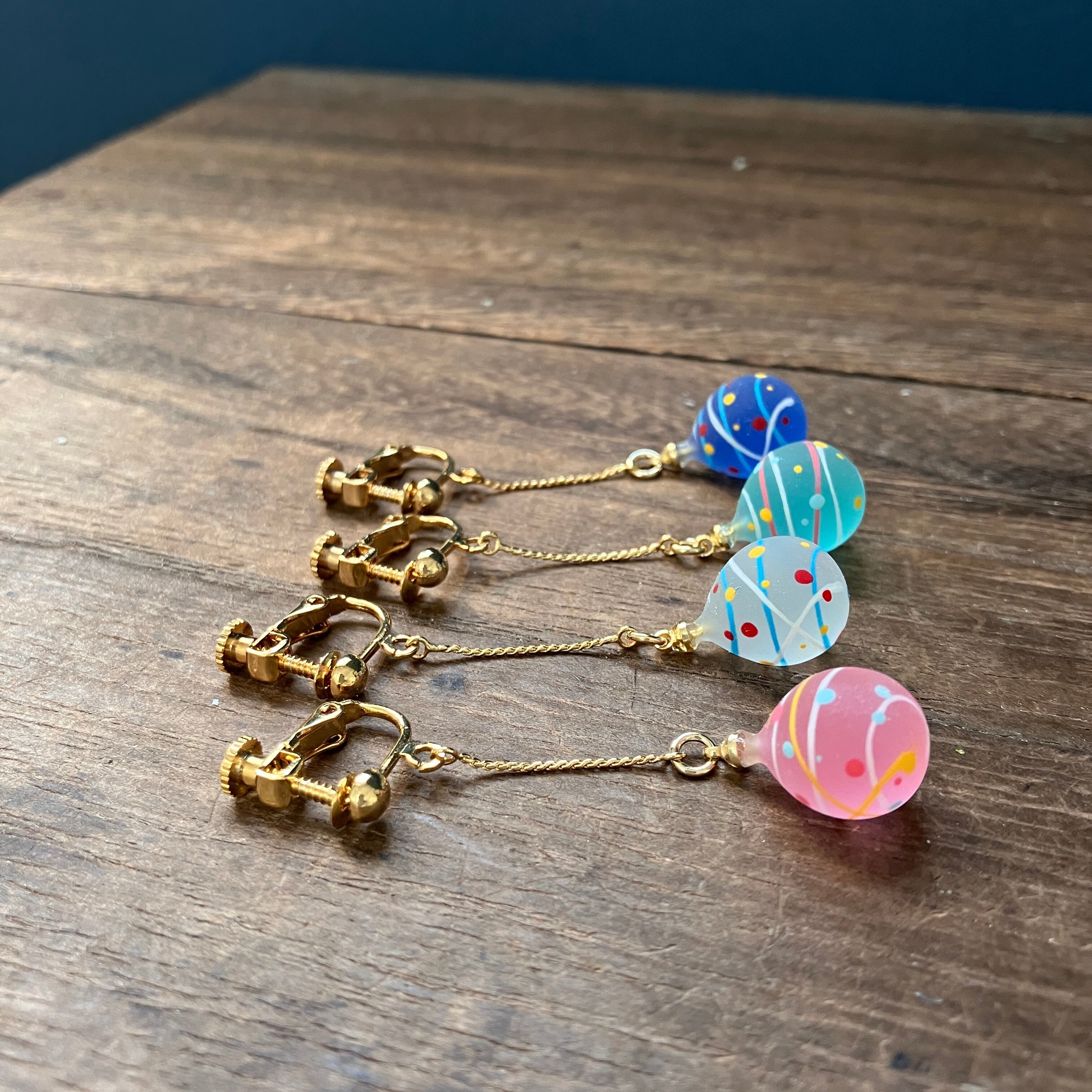 小さな風船モチーフにヨーヨー模様を手描きしました(^^)