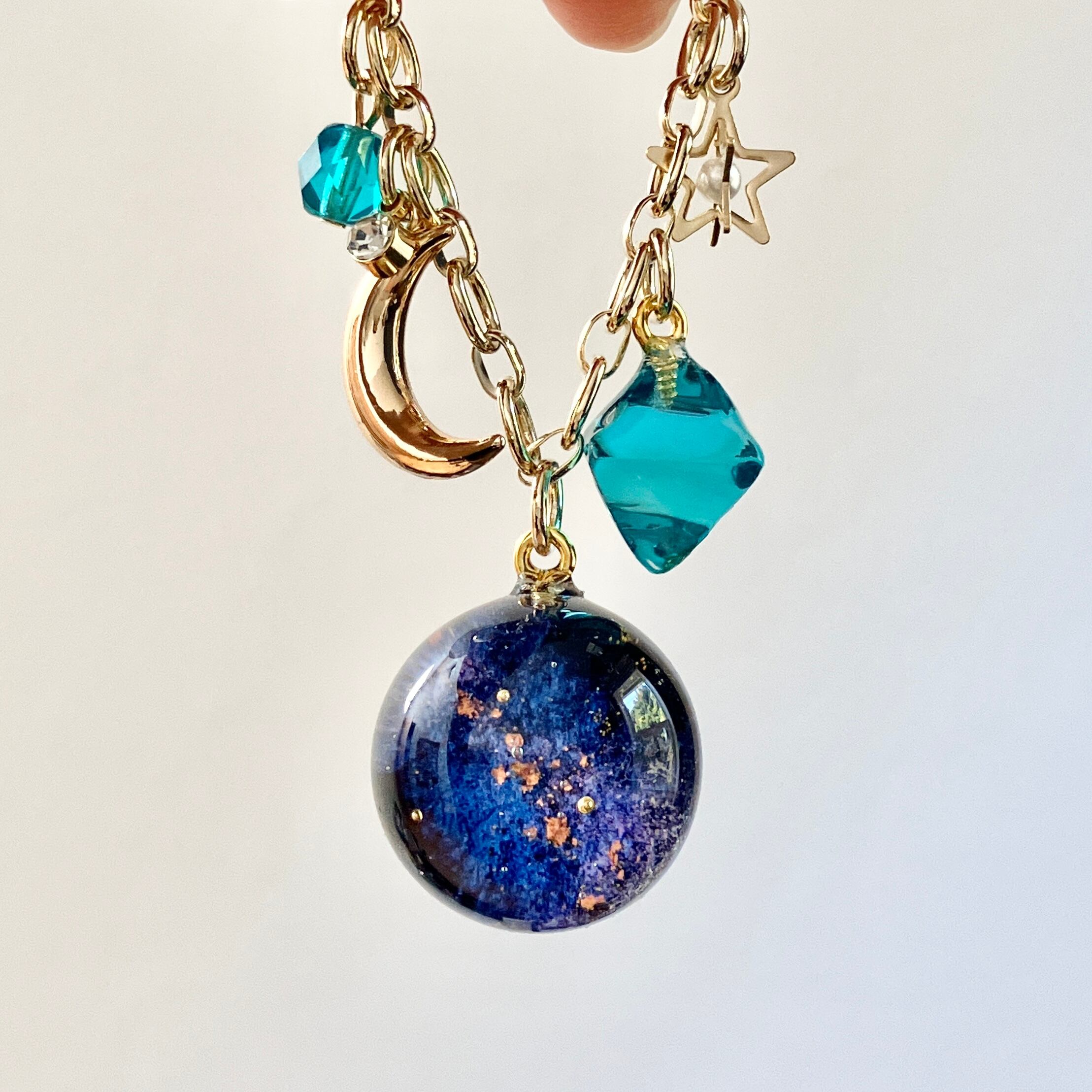 月や星のチャームと鉱石のモチーフを組み合わせて天体がお好きな方にぴったりの作品に仕上がりました(^^)