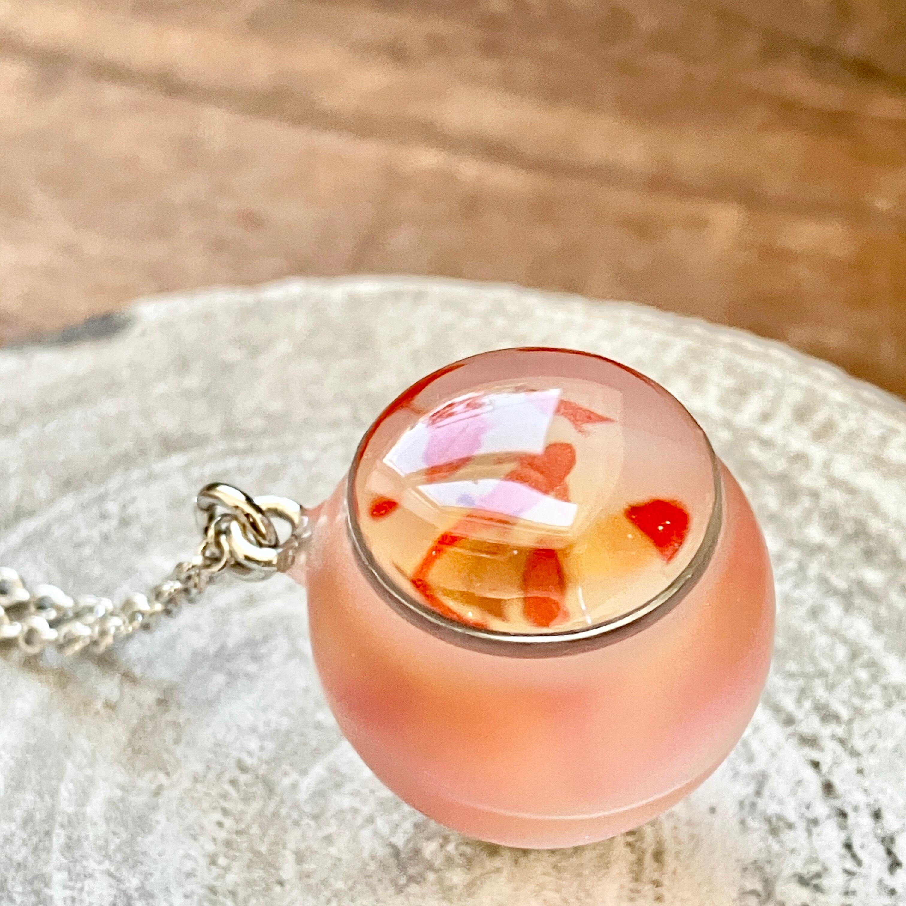 球体のトップに金魚が泳ぐ池をイメージした風景を閉じ込めました。
