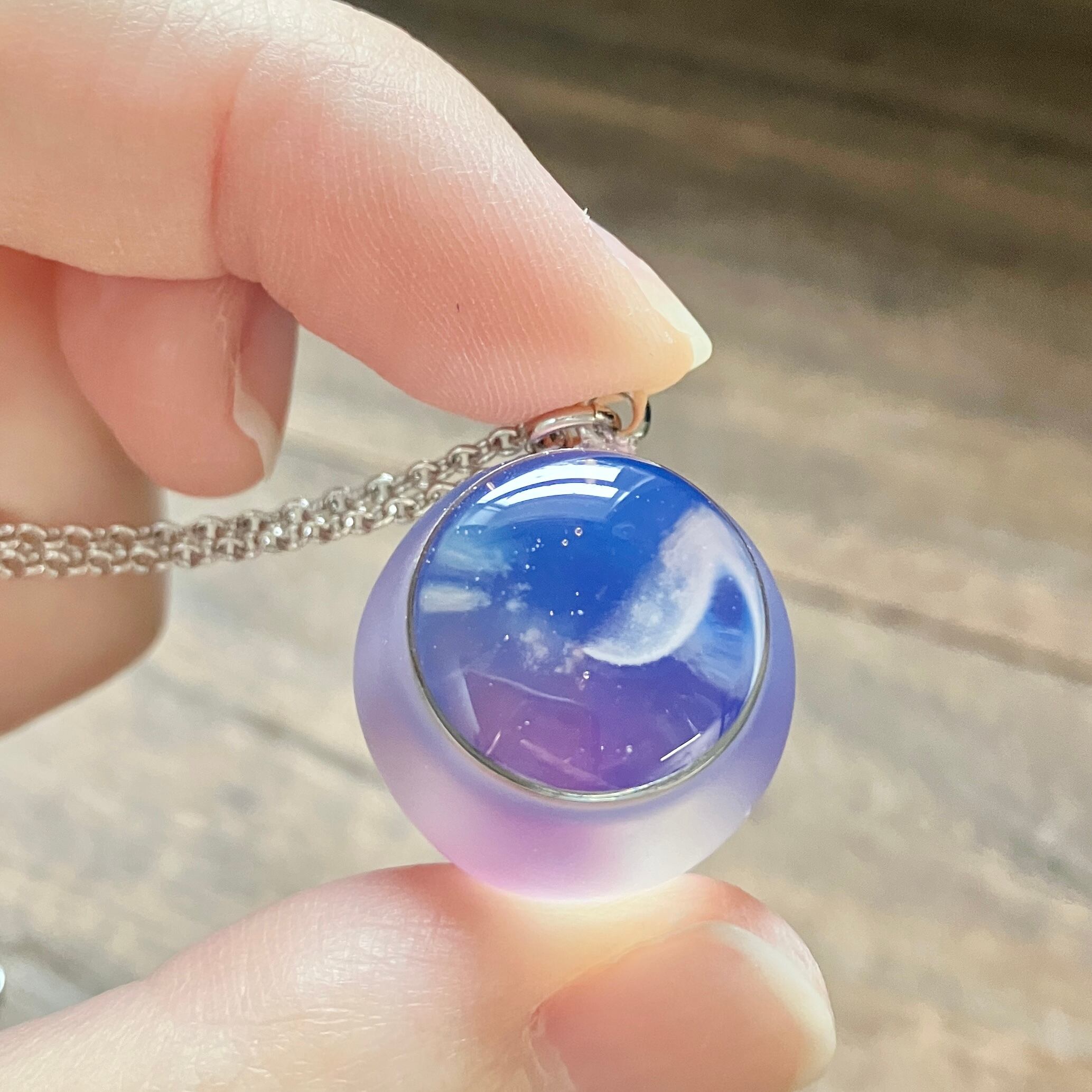 磨りガラスのようなマット加工と中央の窓からは小さな球体に広がる一期一会の空がを覗き込めます。