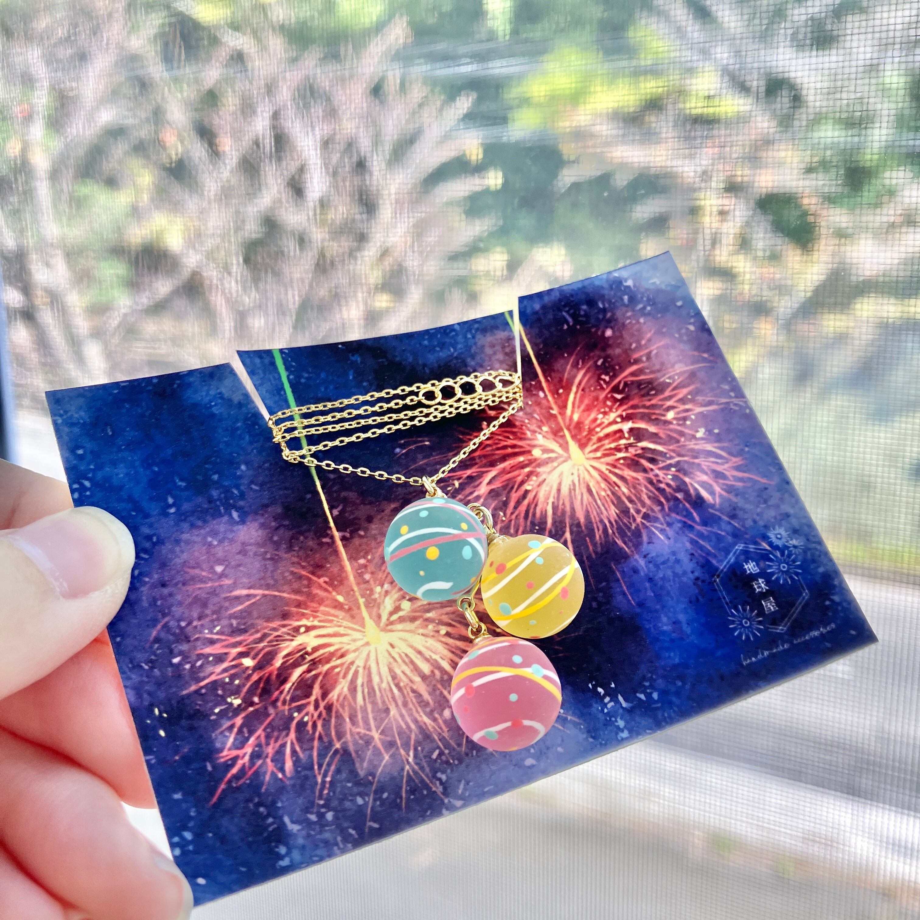 小さな水風船を3色組み合わせてネックレスに仕立てました。