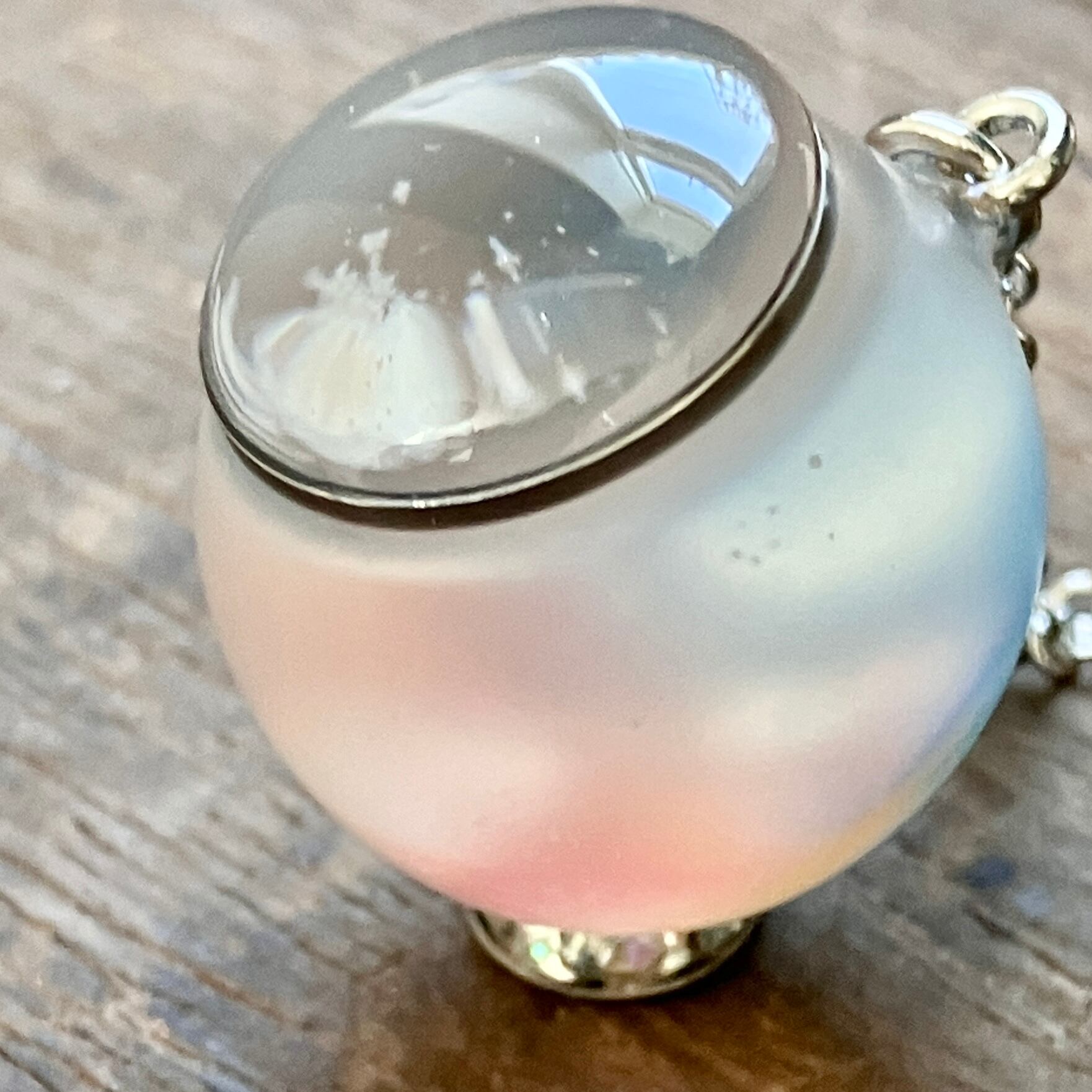 磨りガラスのようなマット加工と中央の窓からは小さな球体に広がる一期一会の空がを覗き込めます。