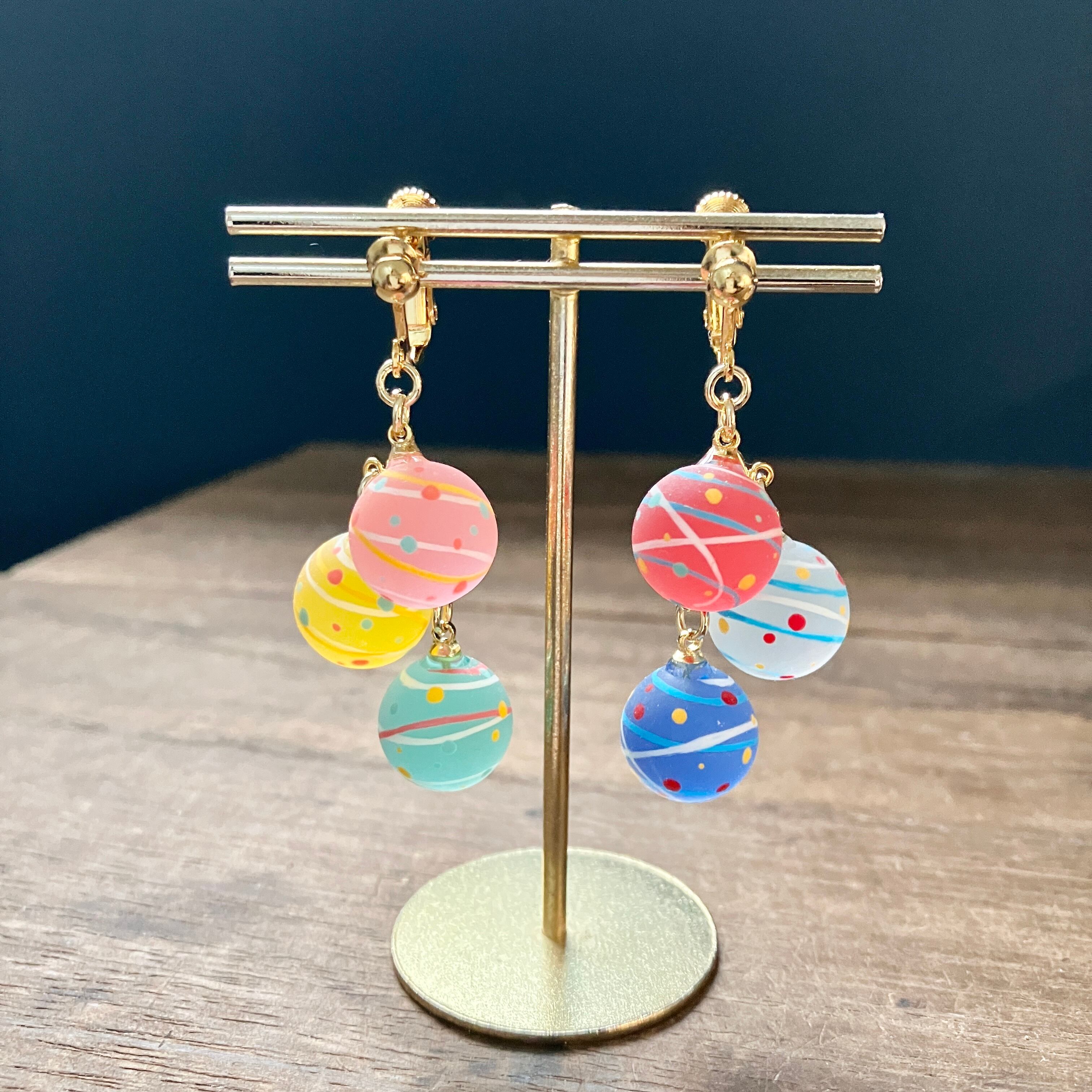 小さな水風船3連イヤリング(マット)