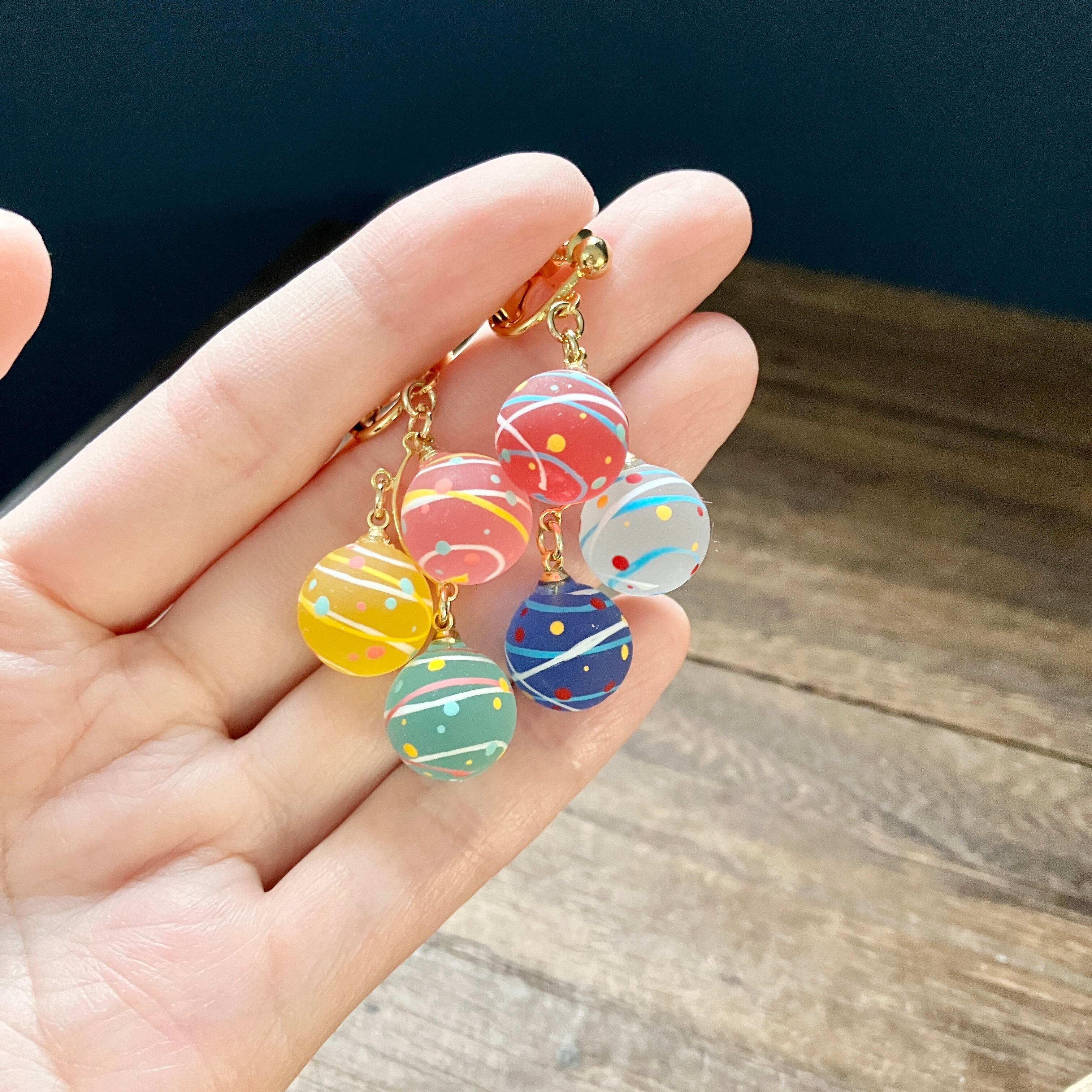 12ミリの小さな球体にヨーヨー模様を手描きしました(^^)