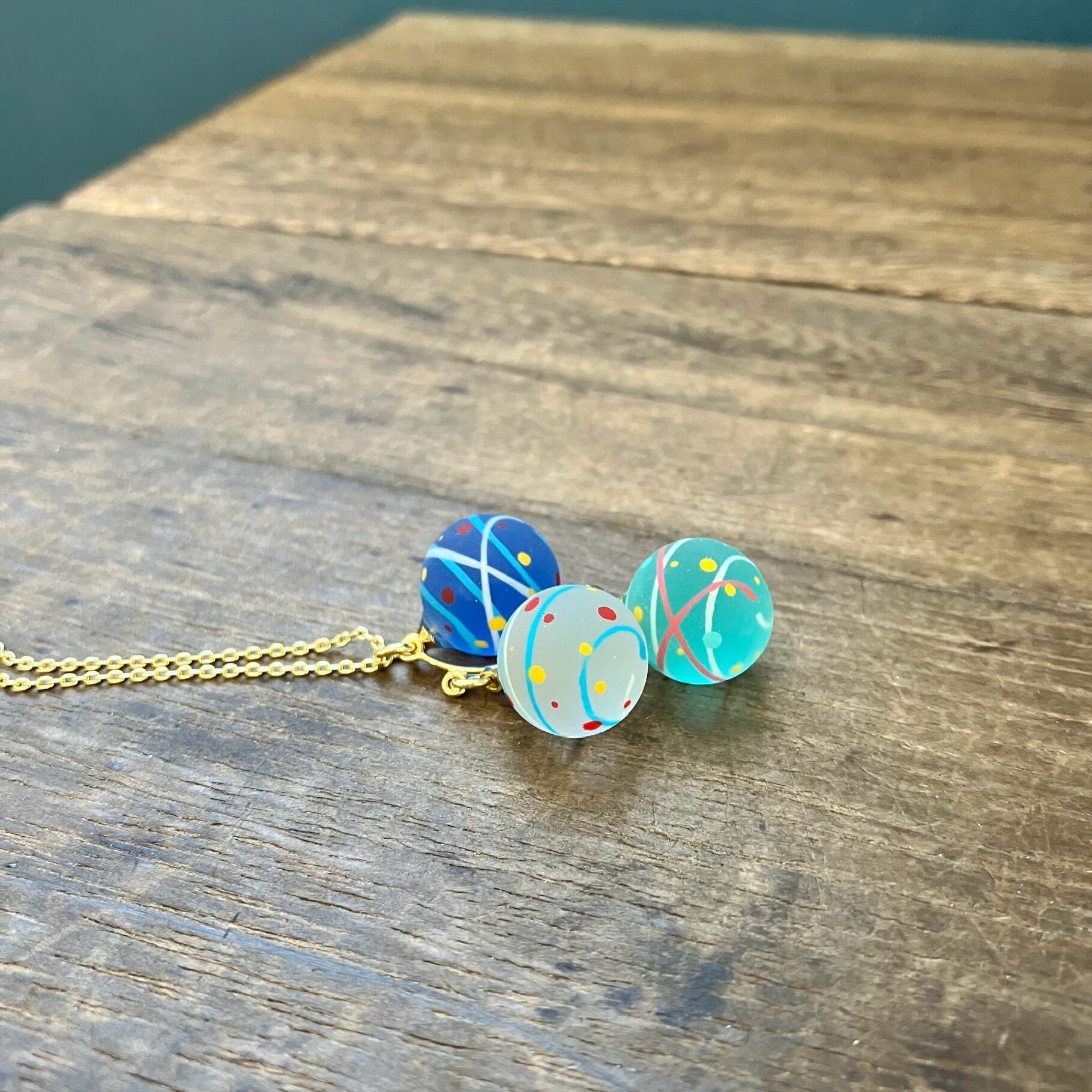 小さな水風船を3色組み合わせてネックレスに仕立てました。