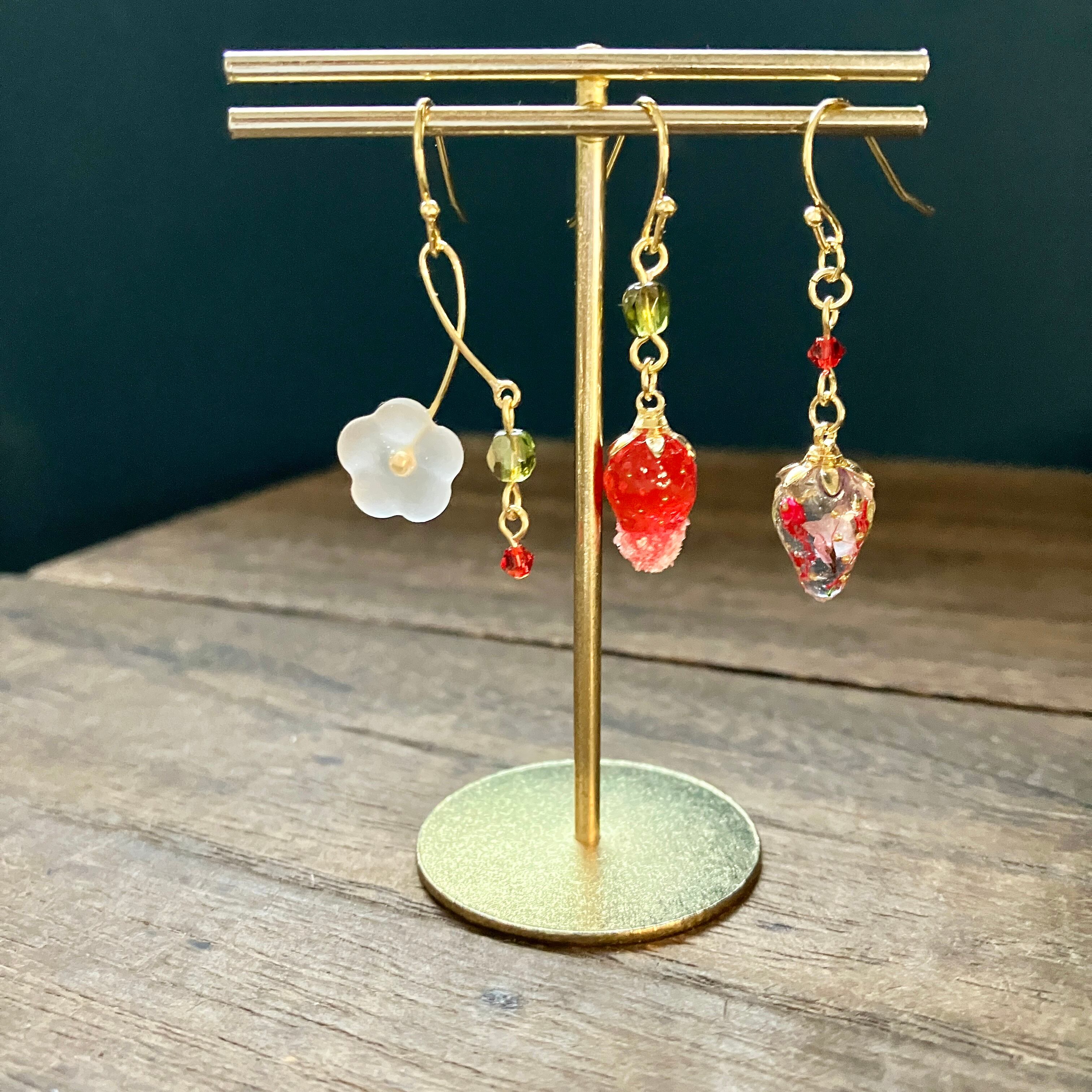 まっ赤な苺とお花入りの苺、そして苺の花をイメージしたモチーフの3個セットです!