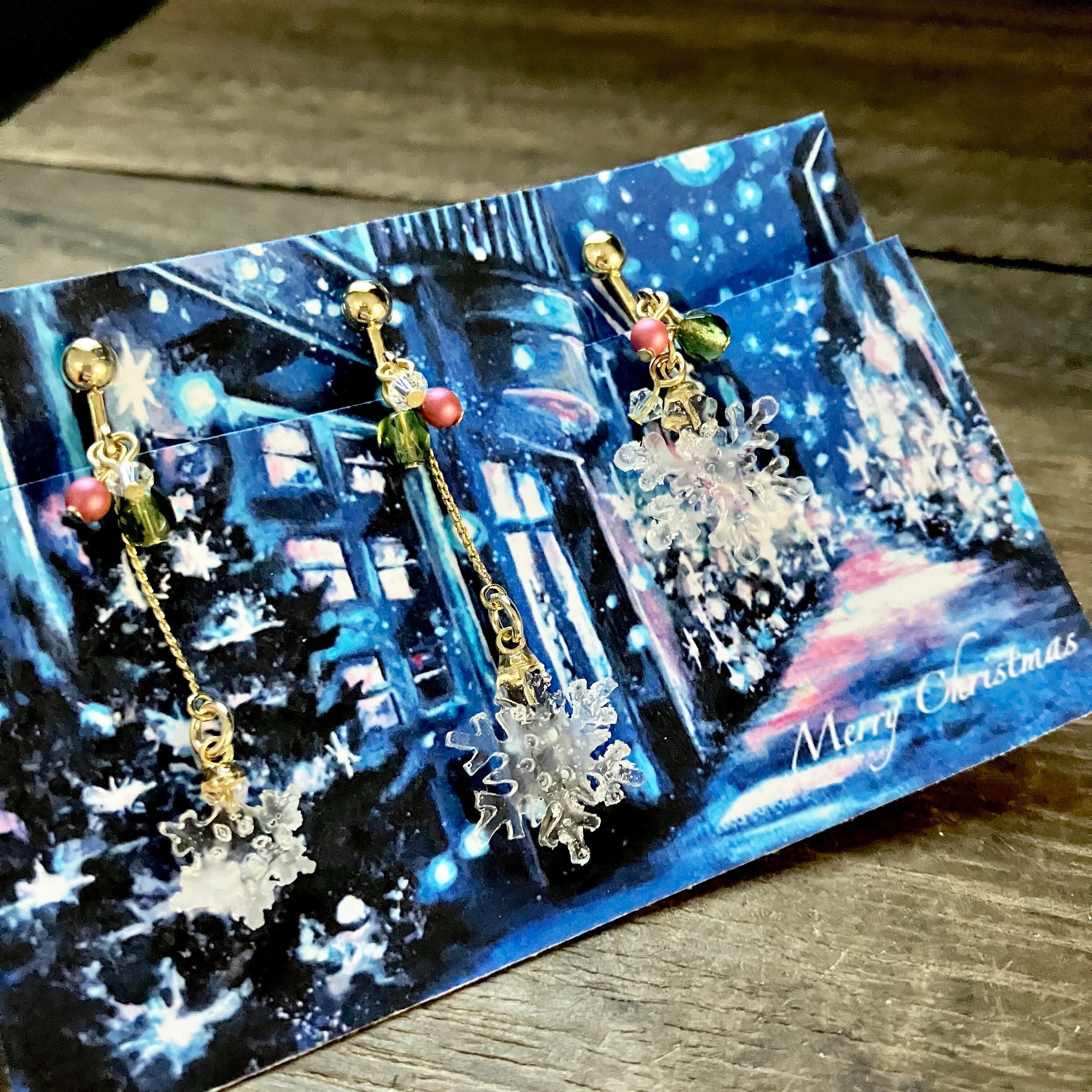 雪の結晶イヤリング(クリスマスver.)