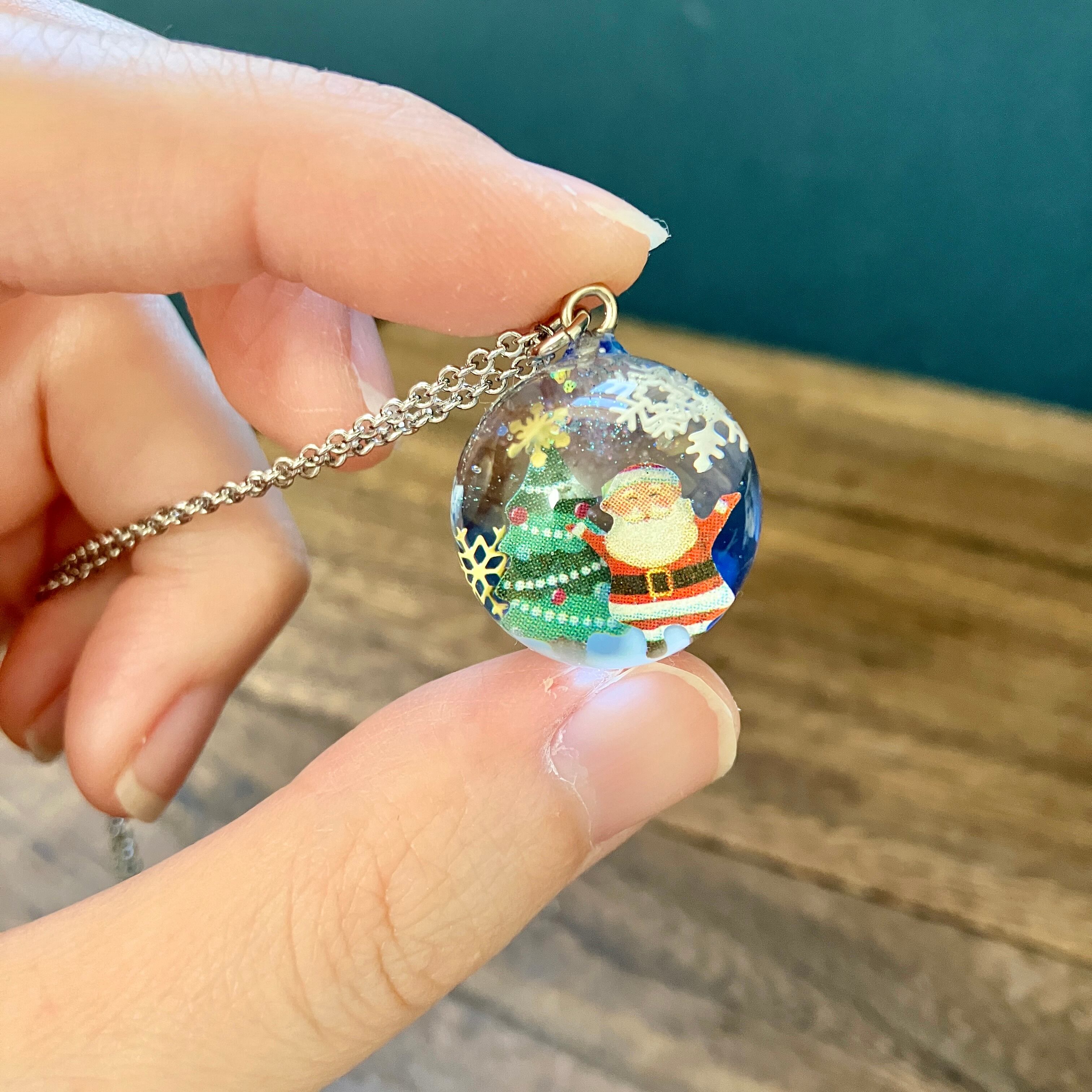 台座付き宙ペンダント「スノードーム(サンタさん)」