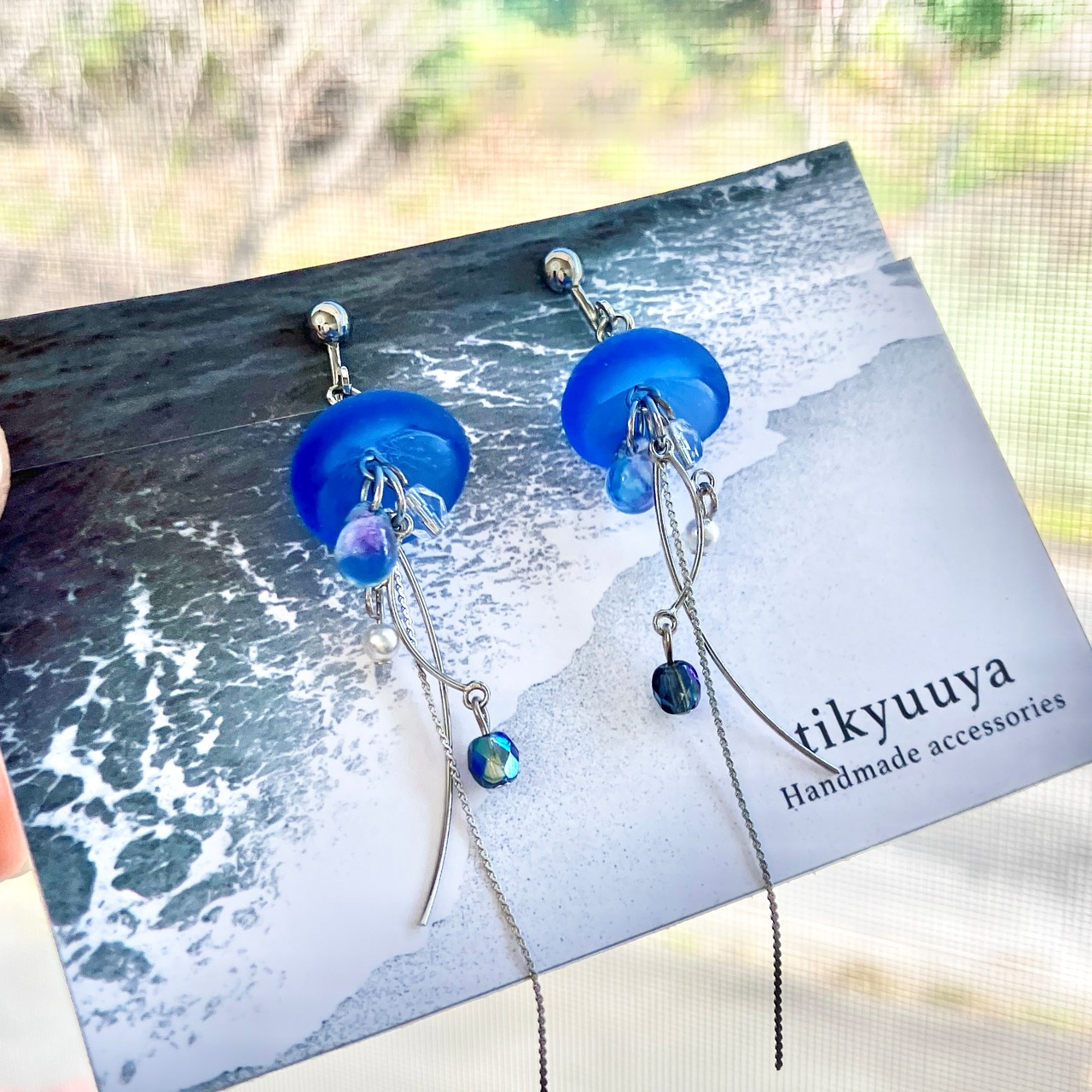 海月をモチーフにしたゆらゆら揺れる耳飾り。