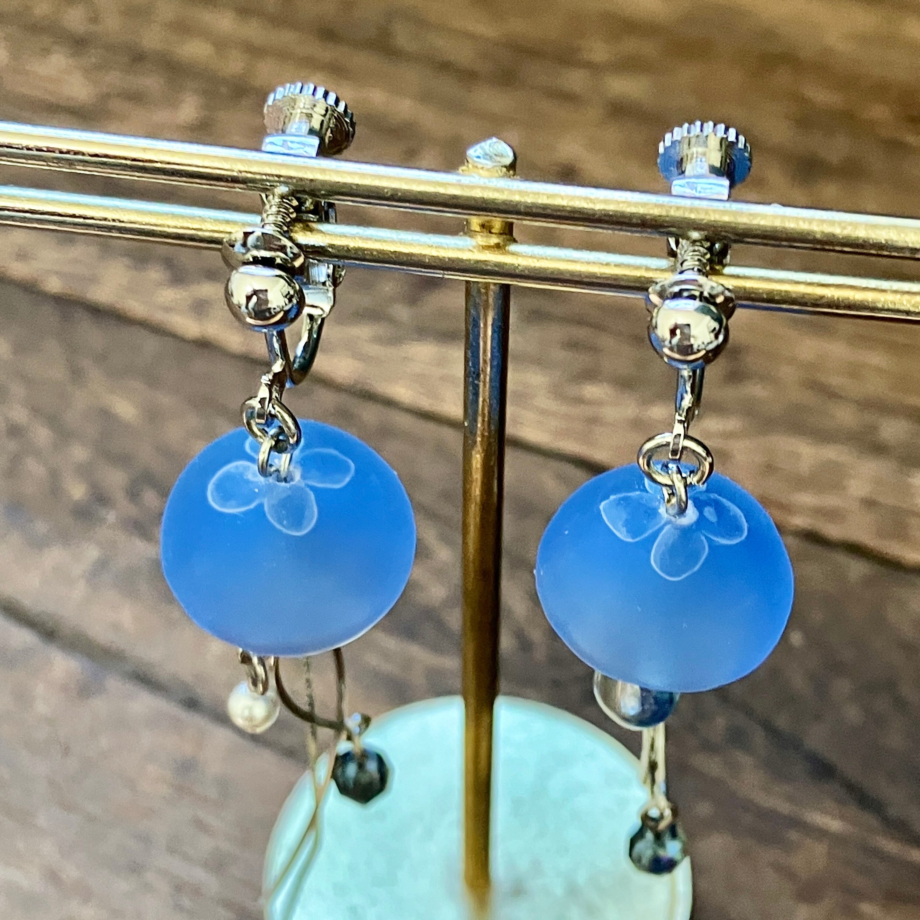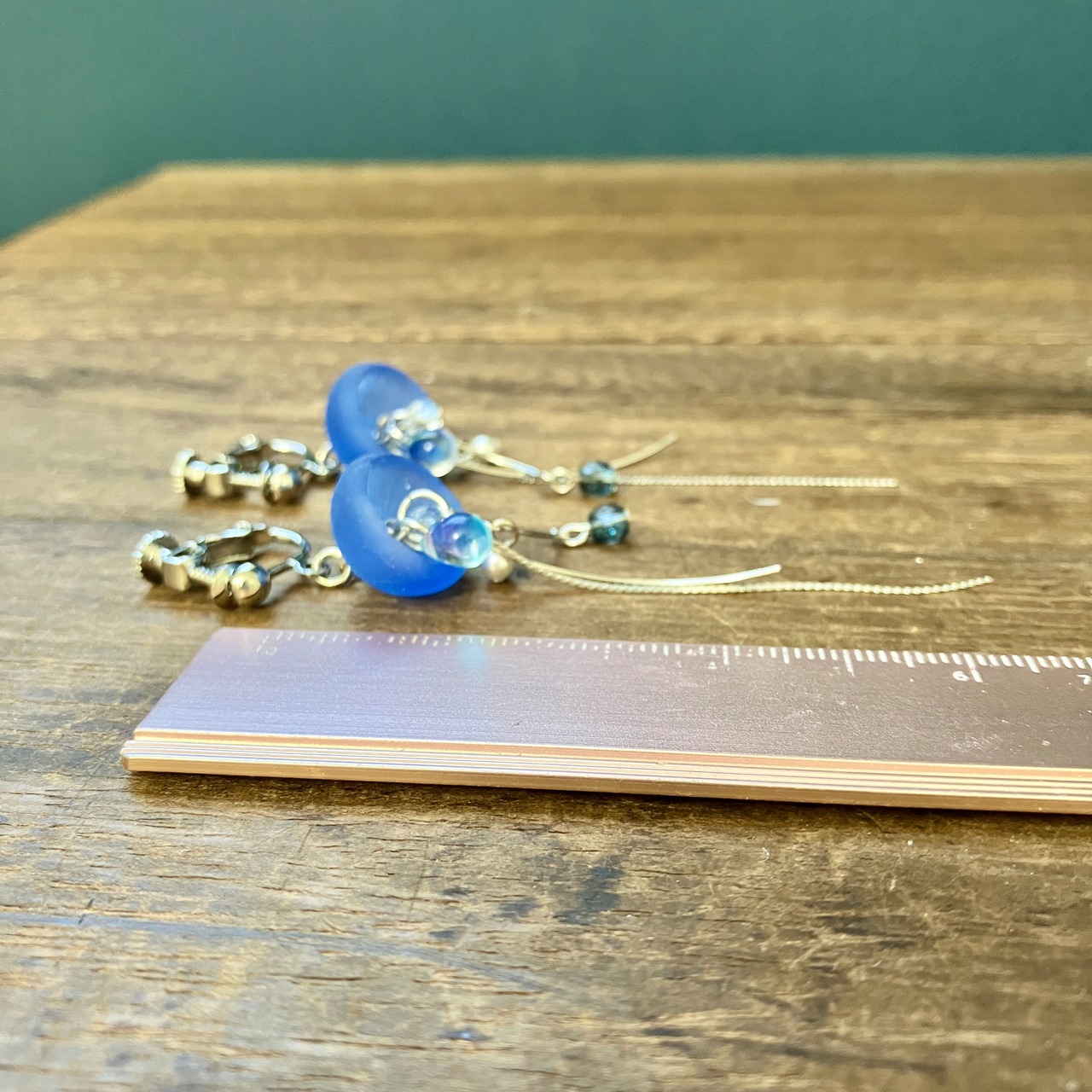ブルー系統のビーズやパールビーズがキラキラ揺れ、耳元を華やかに彩ってくれます。