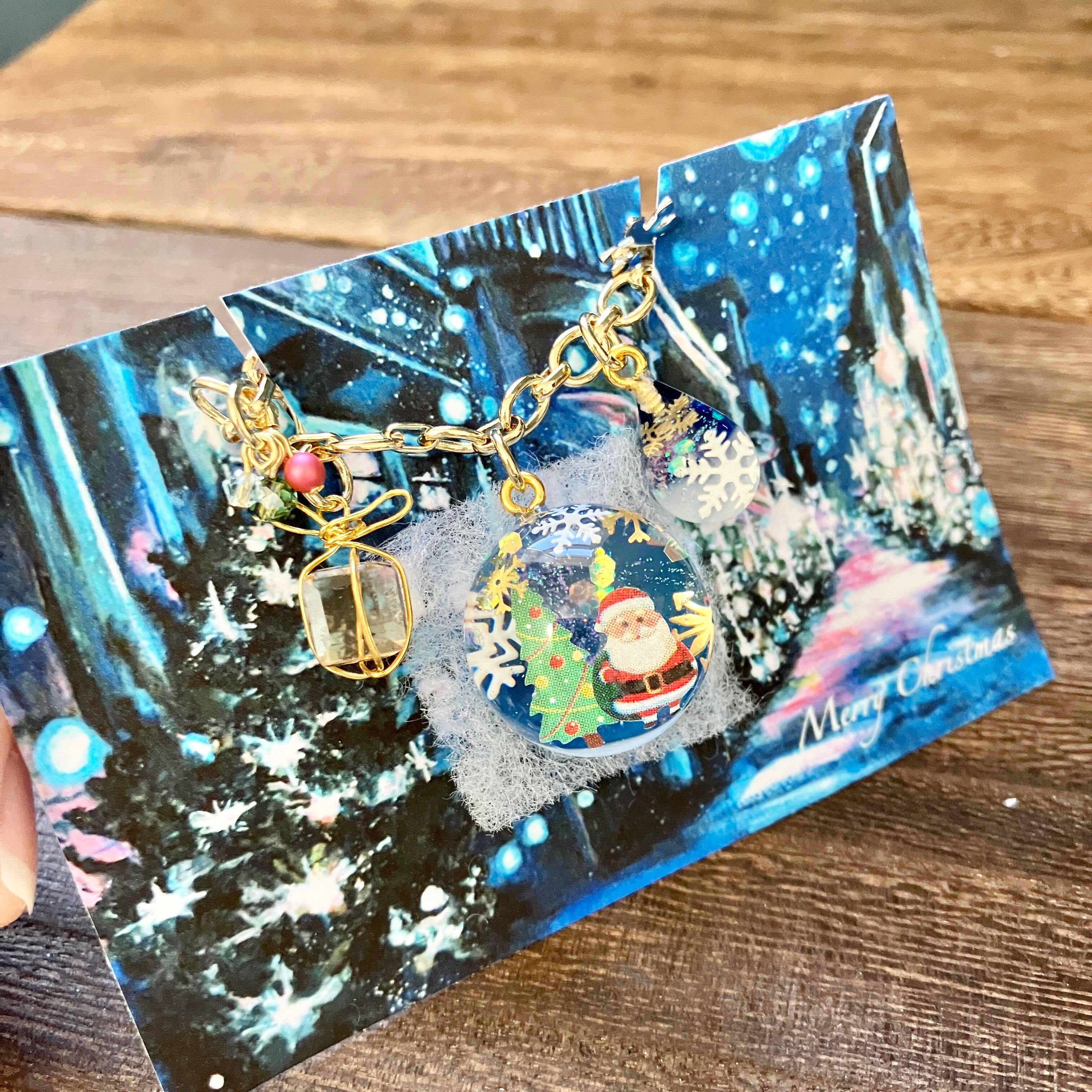 雪降る雫モチーフとプレゼントチャームを組み合わせてクリスマスの雰囲気も出しています(^^)