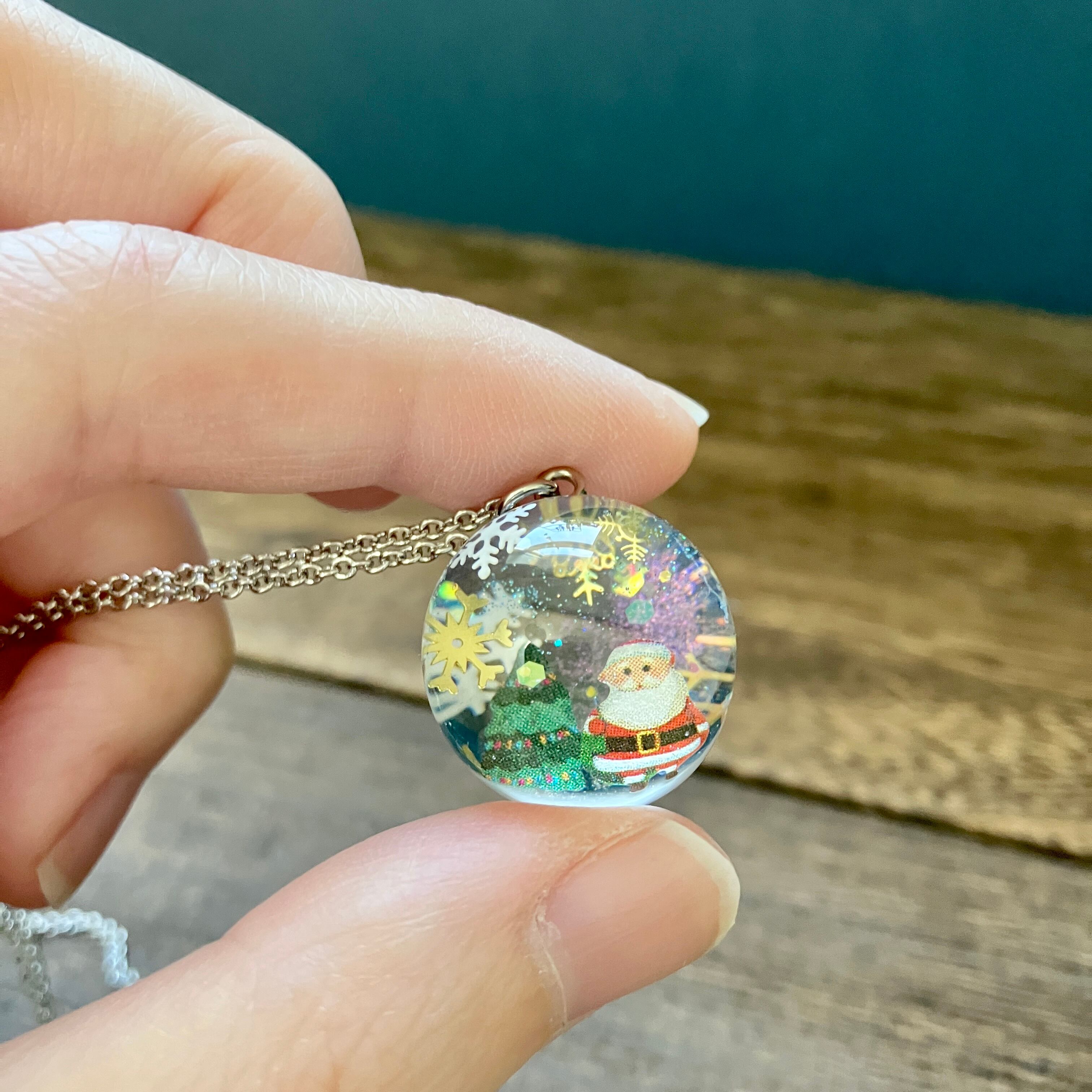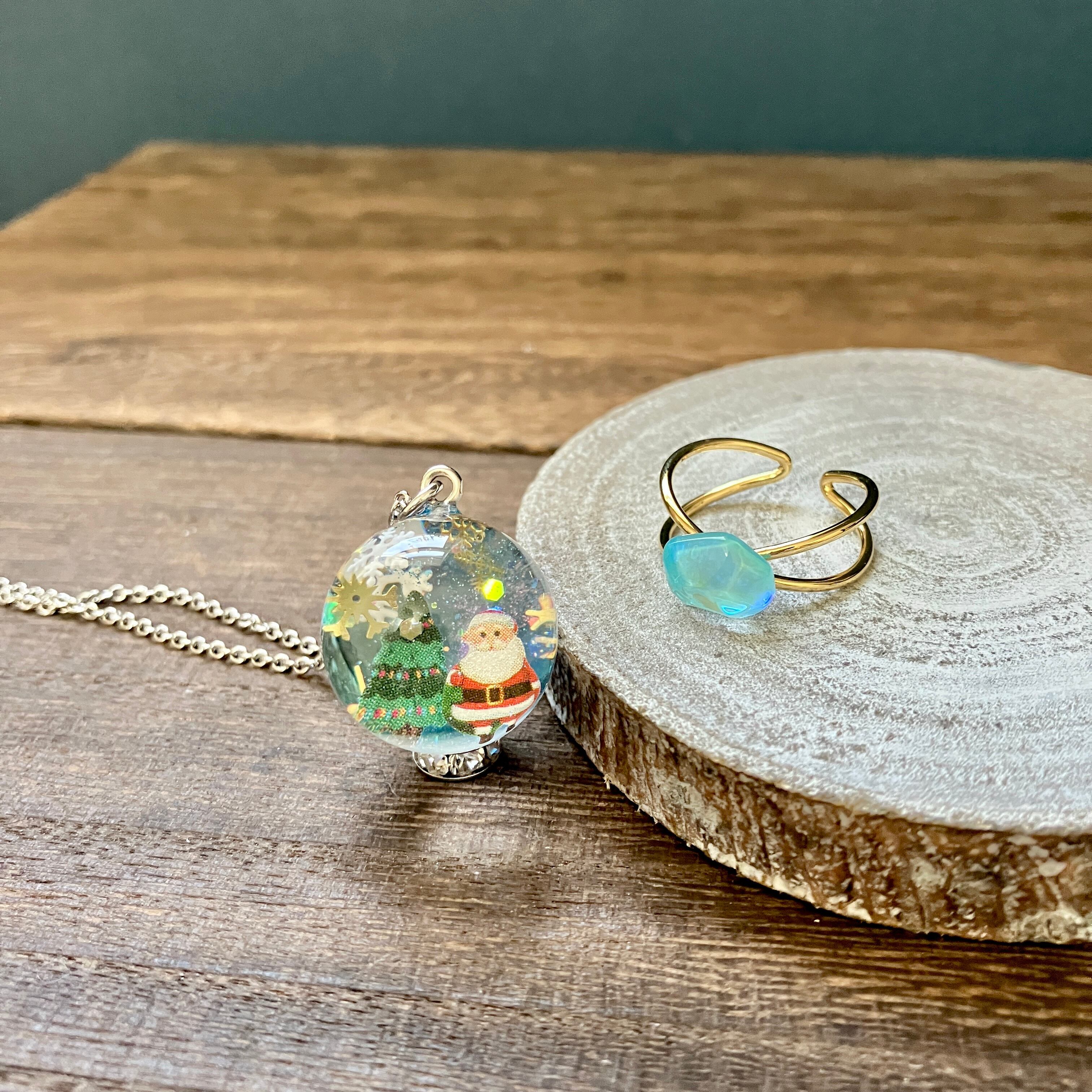 台座付き宙ペンダント「スノードーム(サンタさん)」