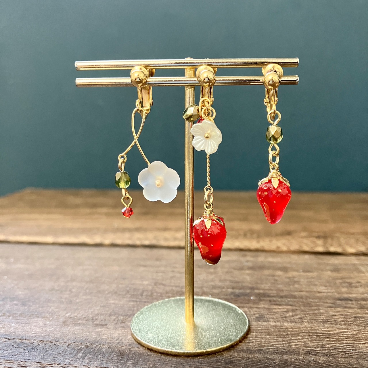 小さな苺の耳飾り。