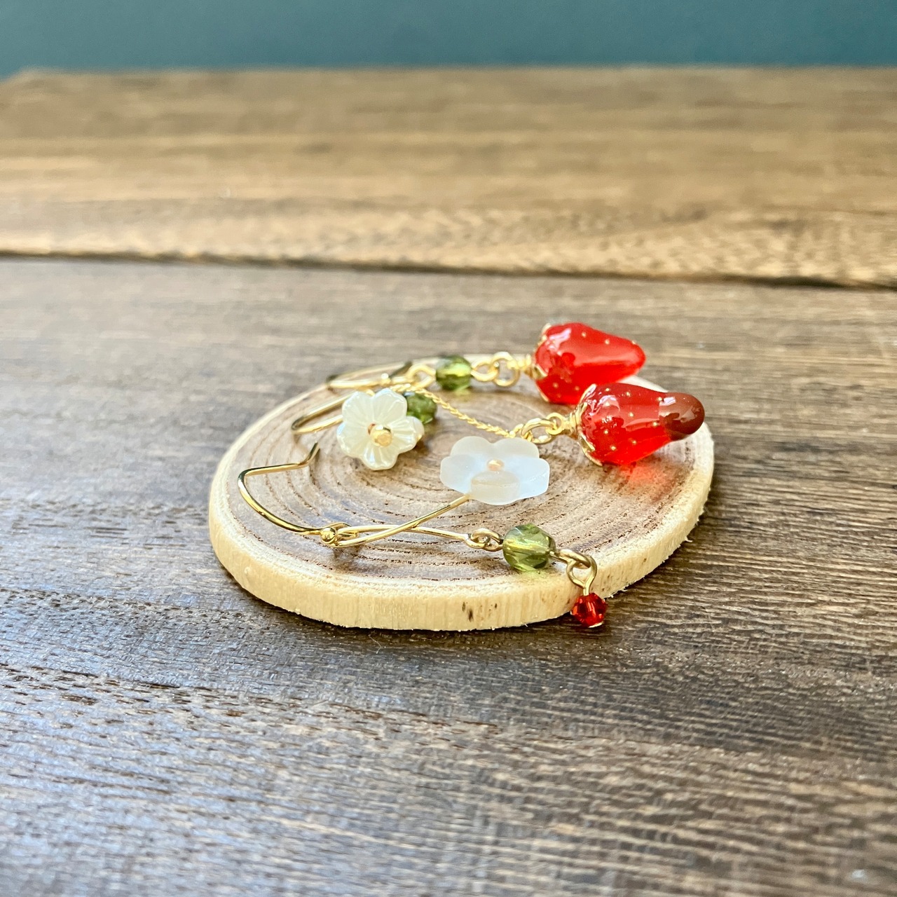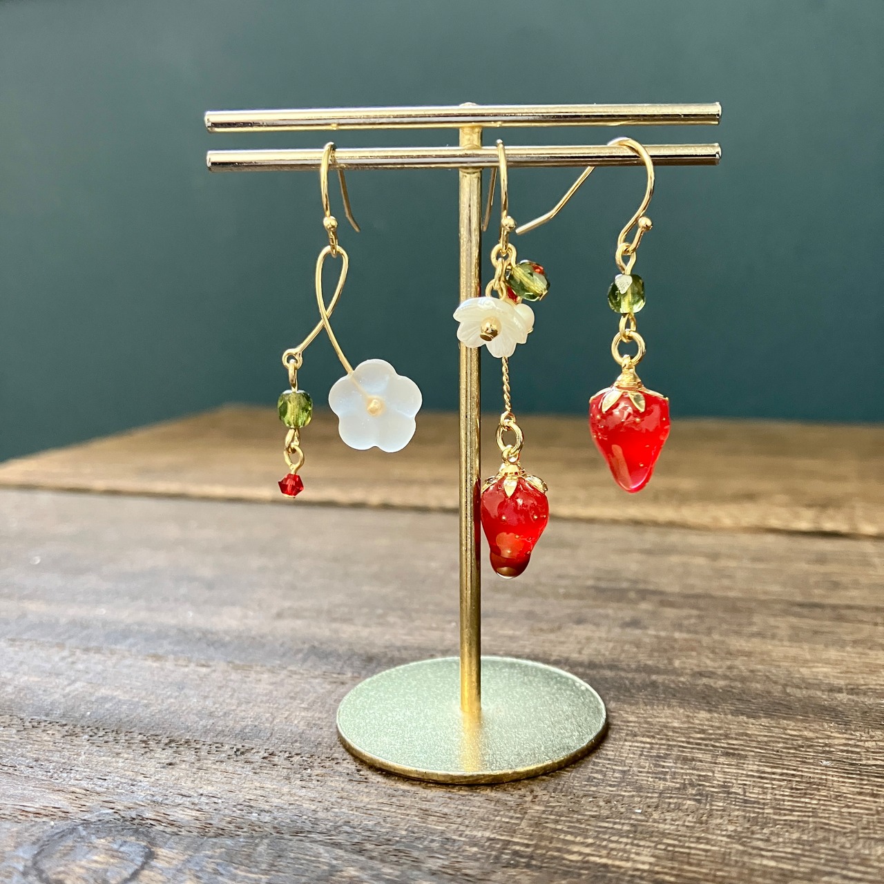 まっ赤な苺とチョコ付きの苺、そして苺の花をイメージしたモチーフの3個セットです!