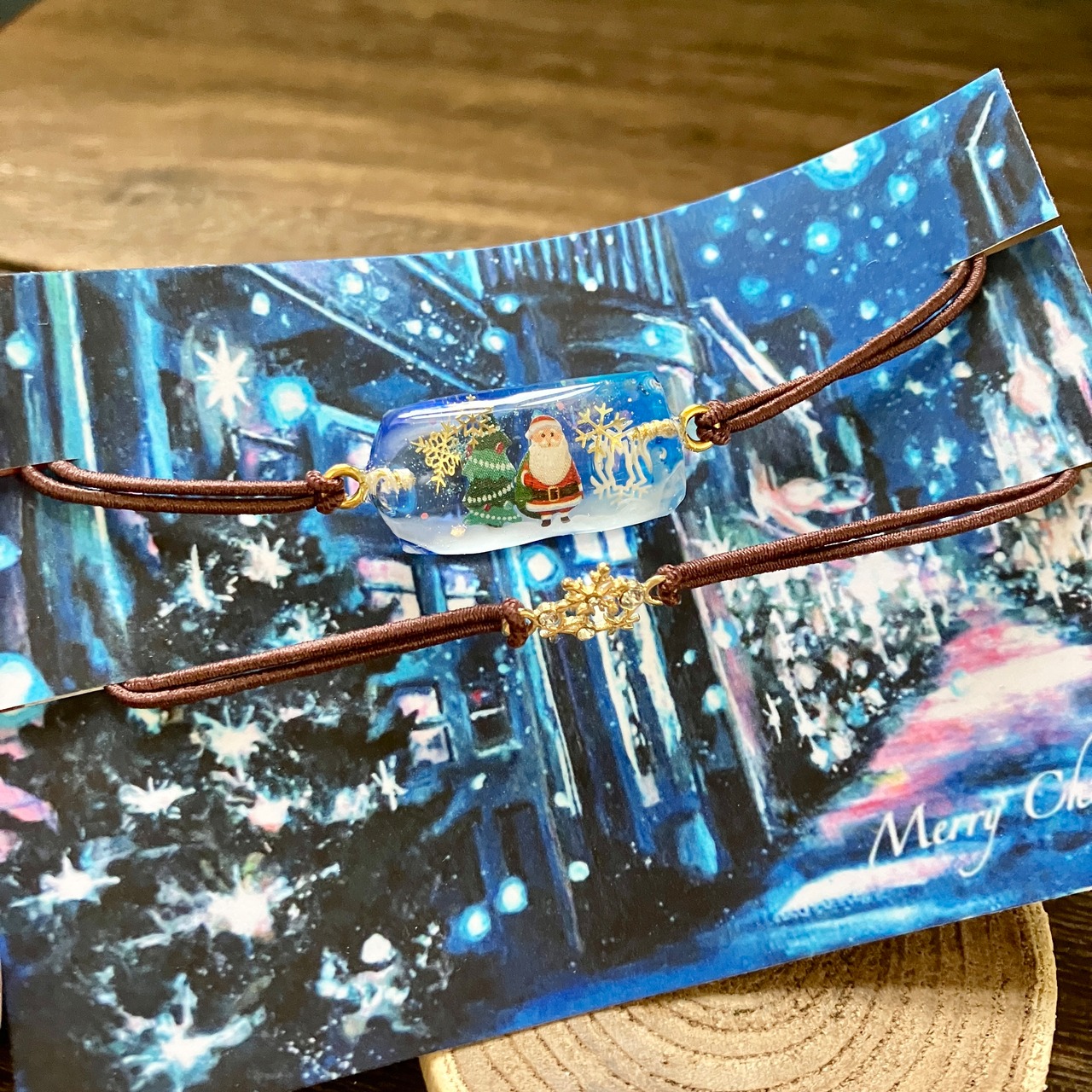 雪チャームのシンプルなヘアゴム ブレスと一緒に重ねづけにおすすめな2色セットです^ ^