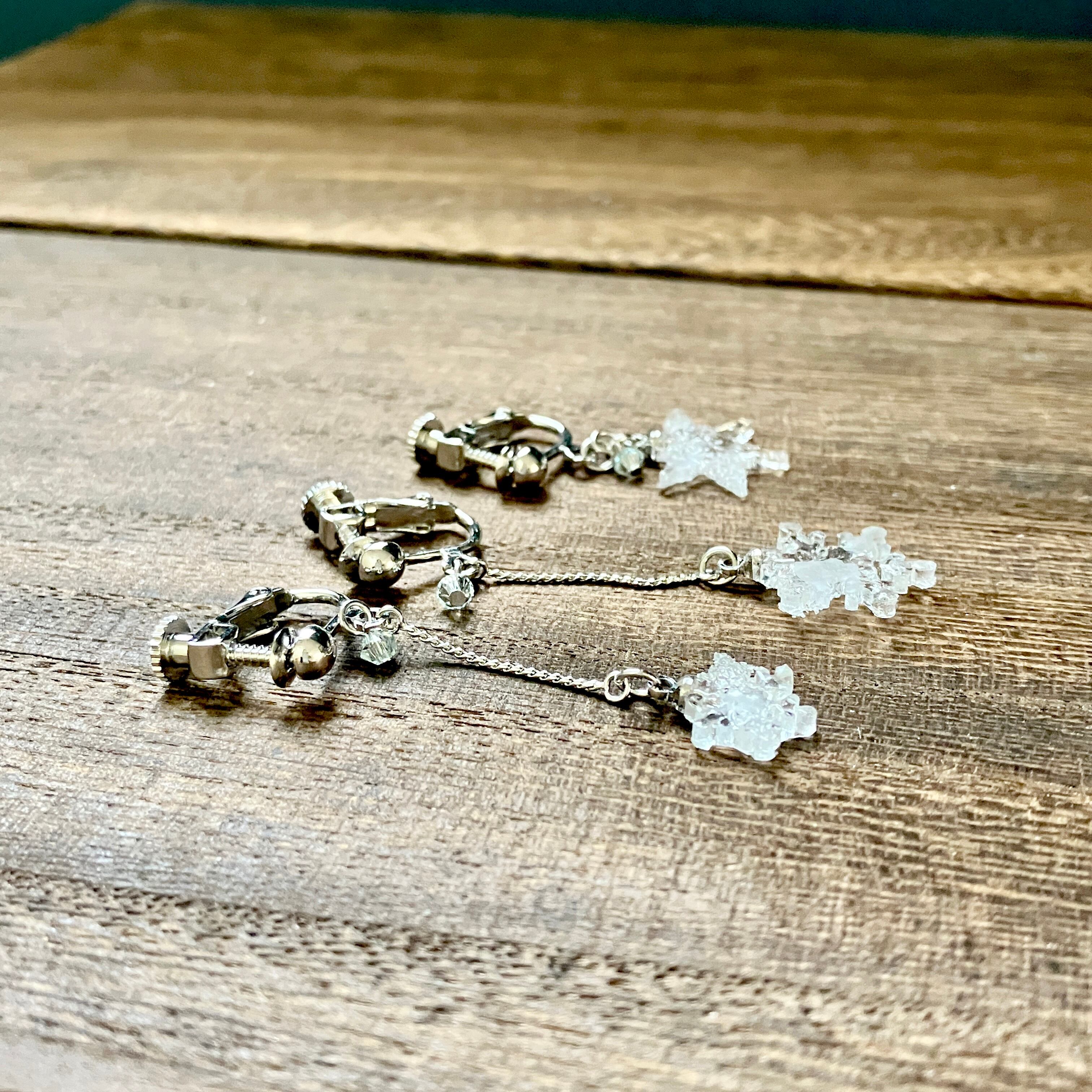 スワロフスキーも一粒ワンポイントに取り付けて、冬限定の耳飾りに仕上げました。