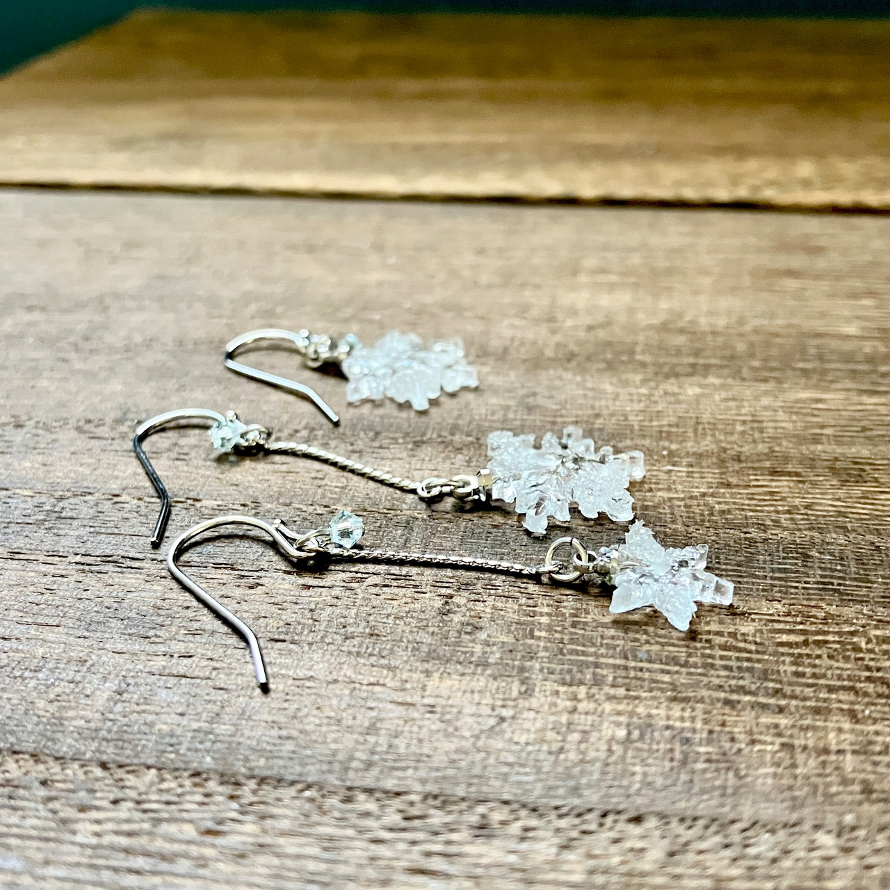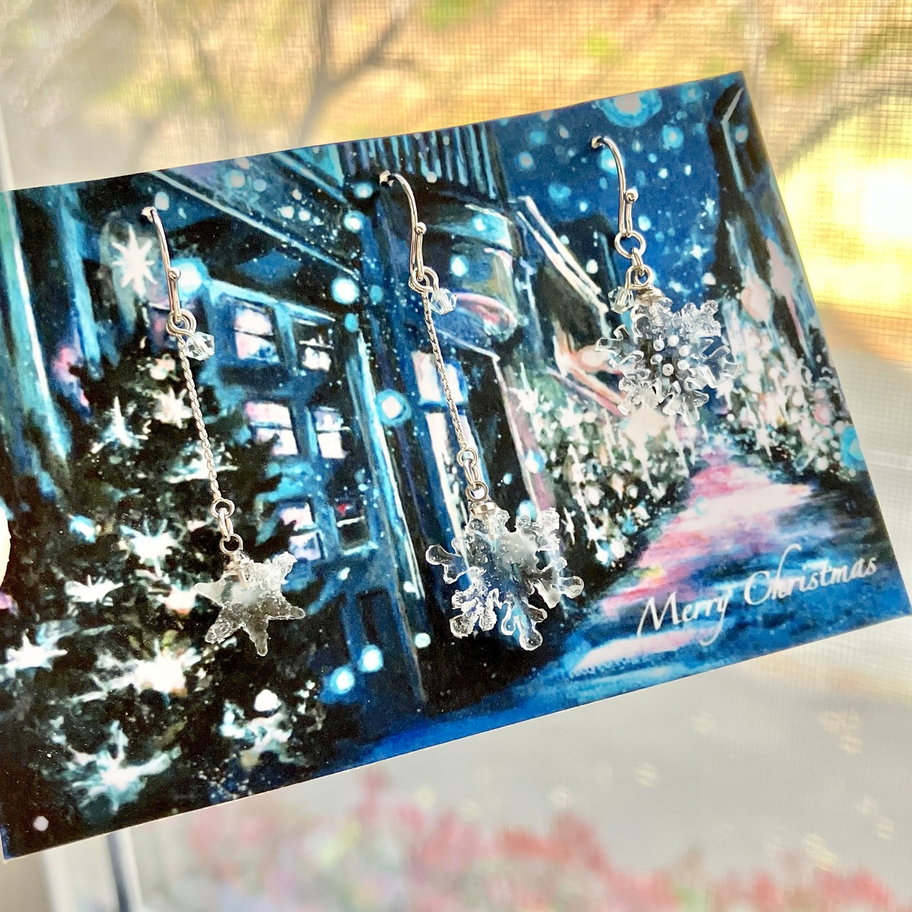 スワロフスキーも一粒ワンポイントに取り付けて、冬限定の耳飾りに仕上げました。