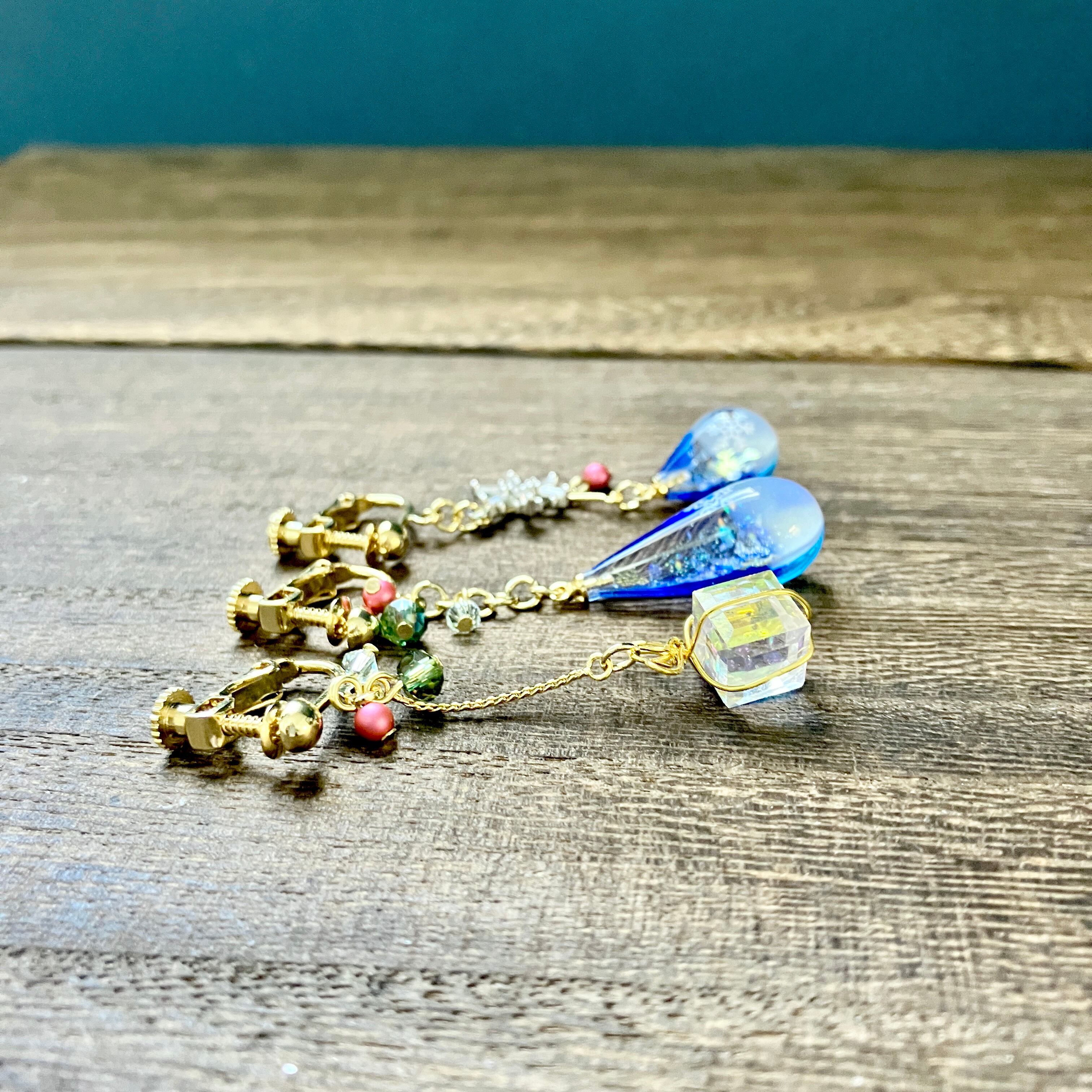 スワロフスキーもワンポイントに取り付けて、冬限定の耳飾りに仕上げました。