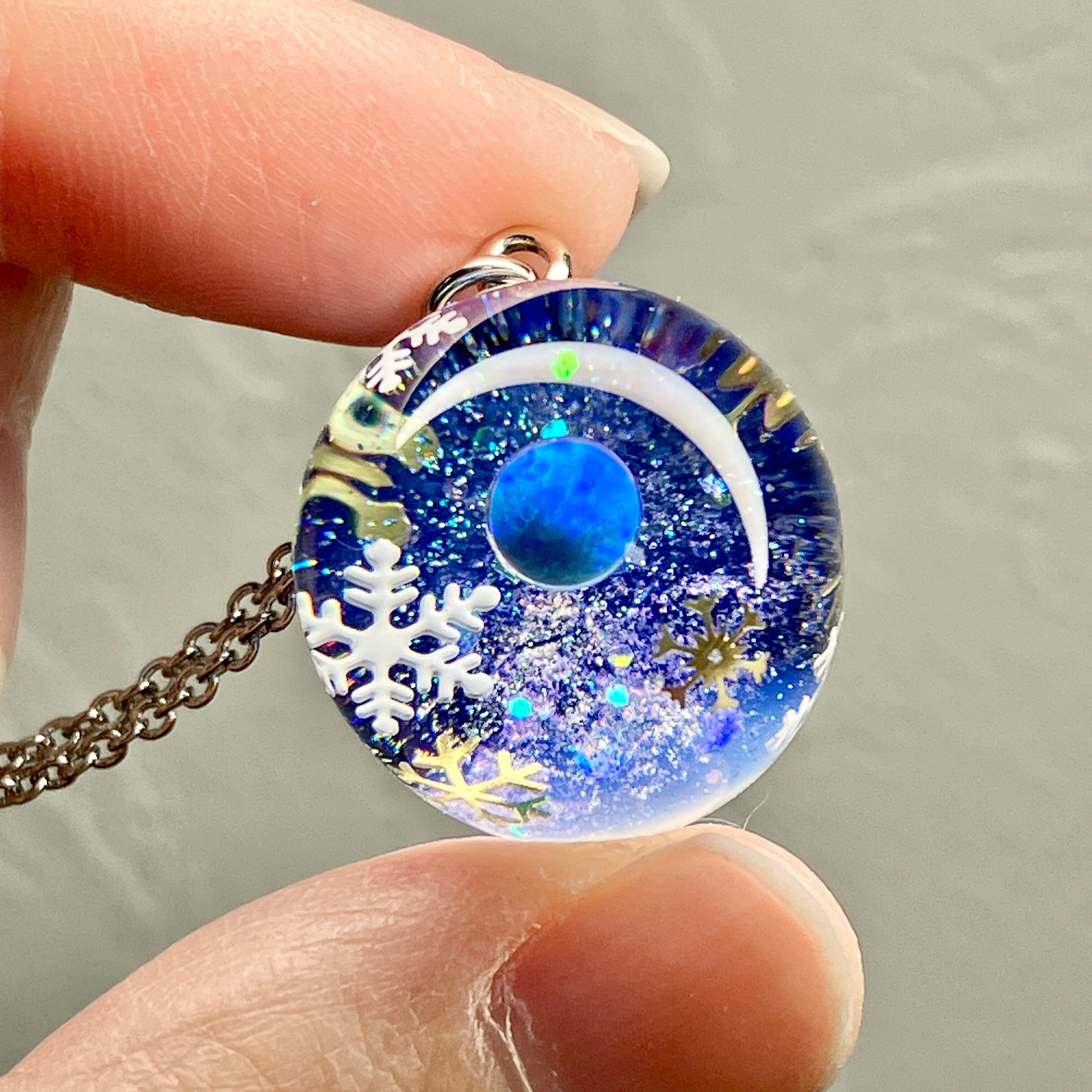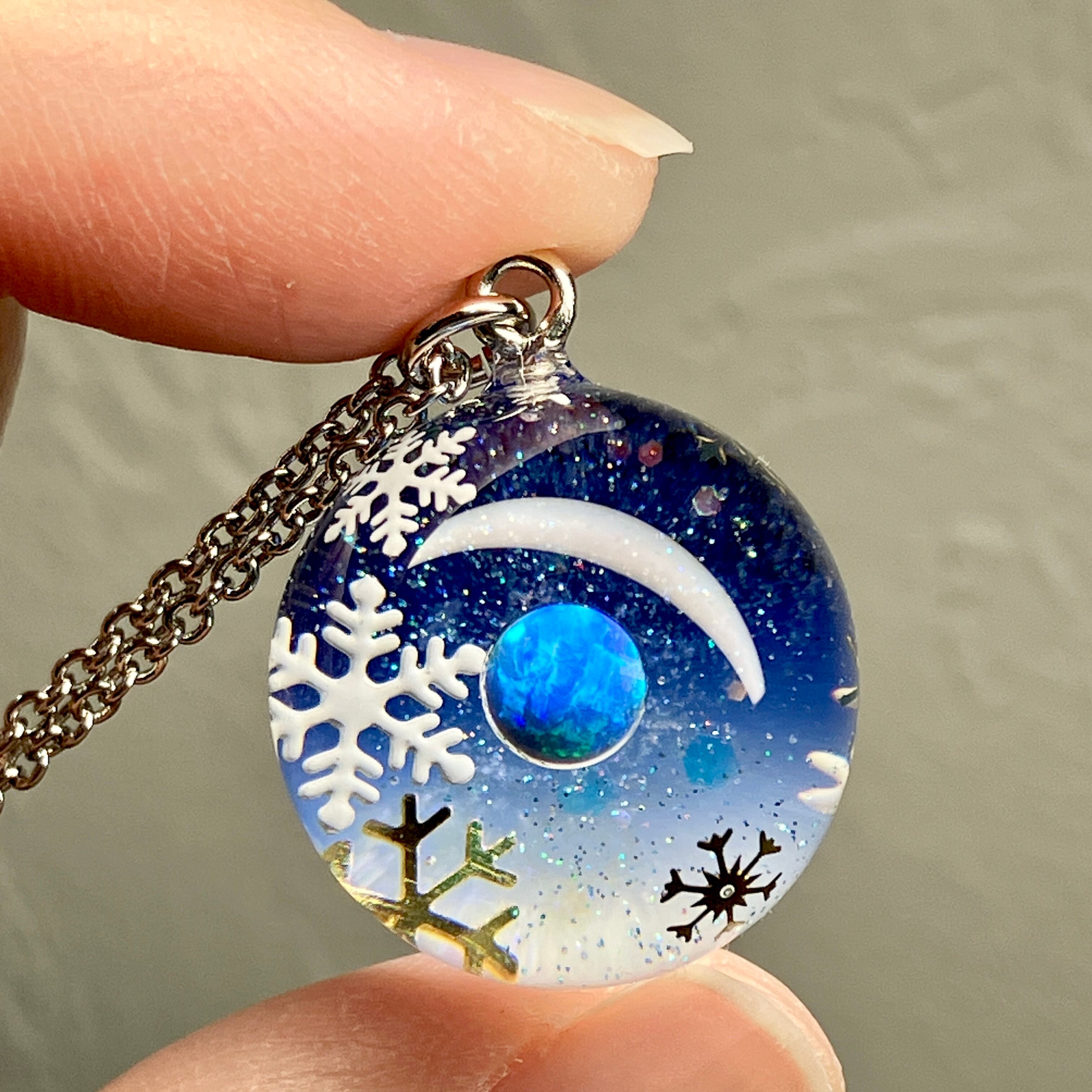 訳あり宙ペンダント「雪と星空」人工オパール