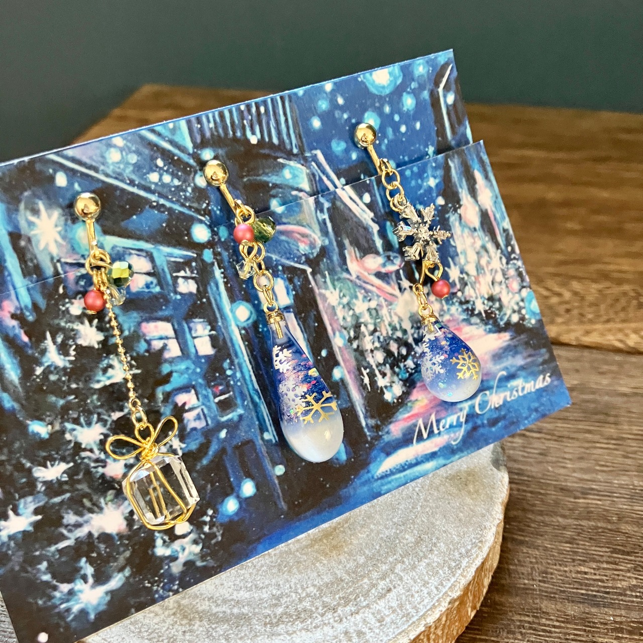 プレゼントボックスチャームの耳飾りと3点セットです。