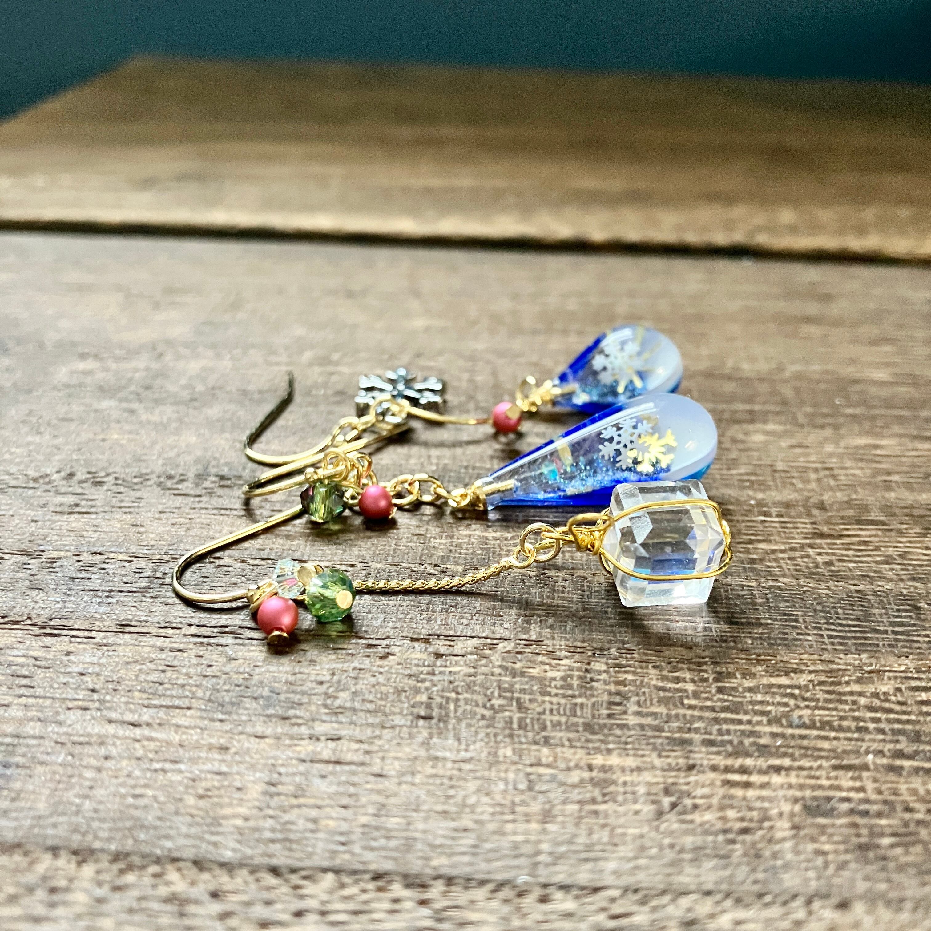 スワロフスキーもワンポイントに取り付けて、冬限定の耳飾りに仕上げました。