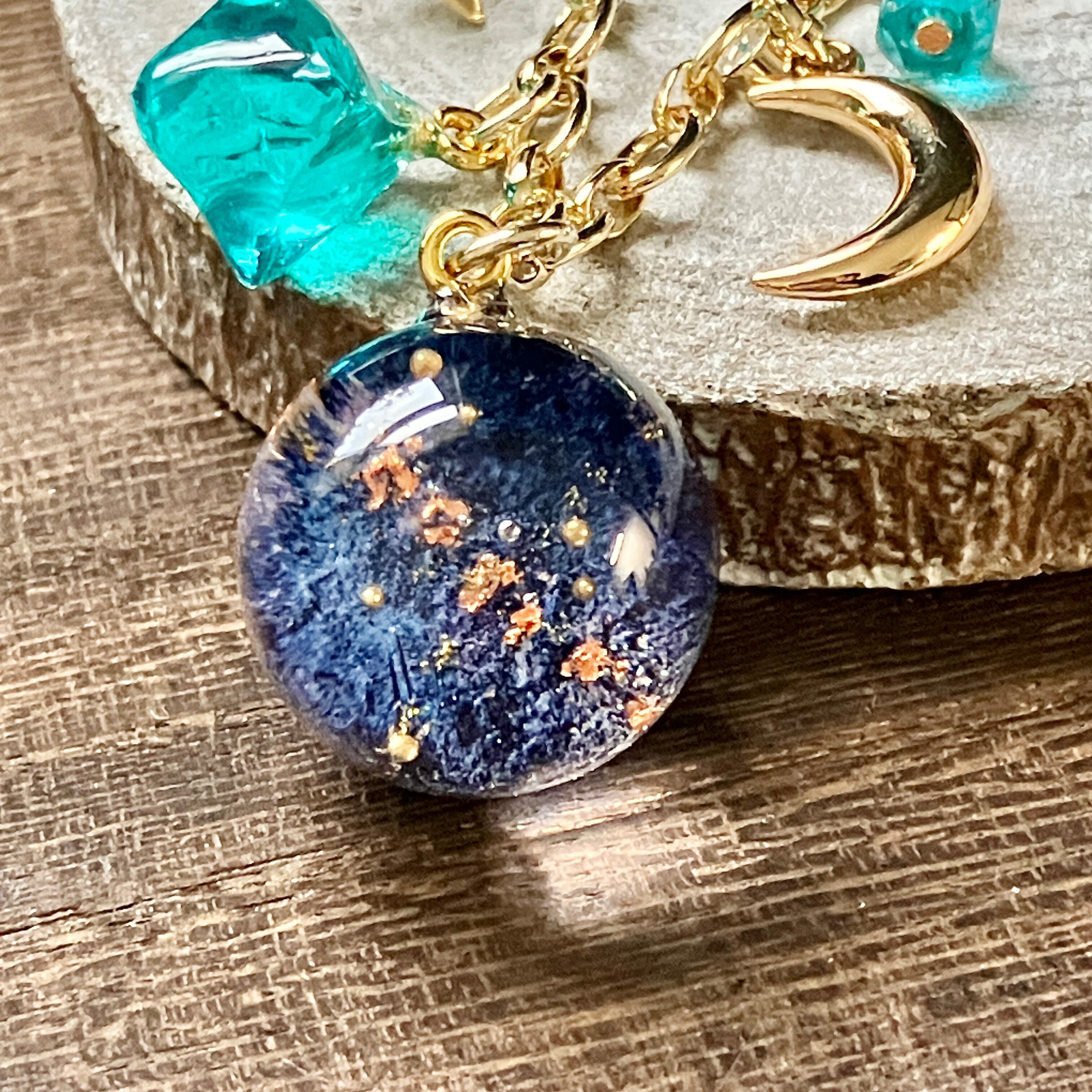月や星のチャームと鉱石のモチーフを組み合わせて天体がお好きな方にぴったりの作品に仕上がりました(^^)