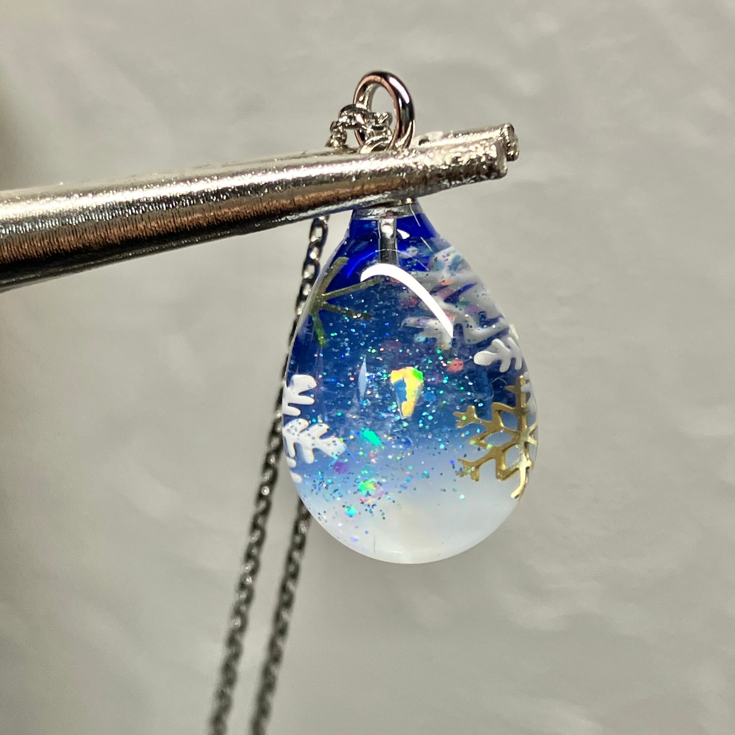 小さな卵ネックレス15ミリ「雪と星空」