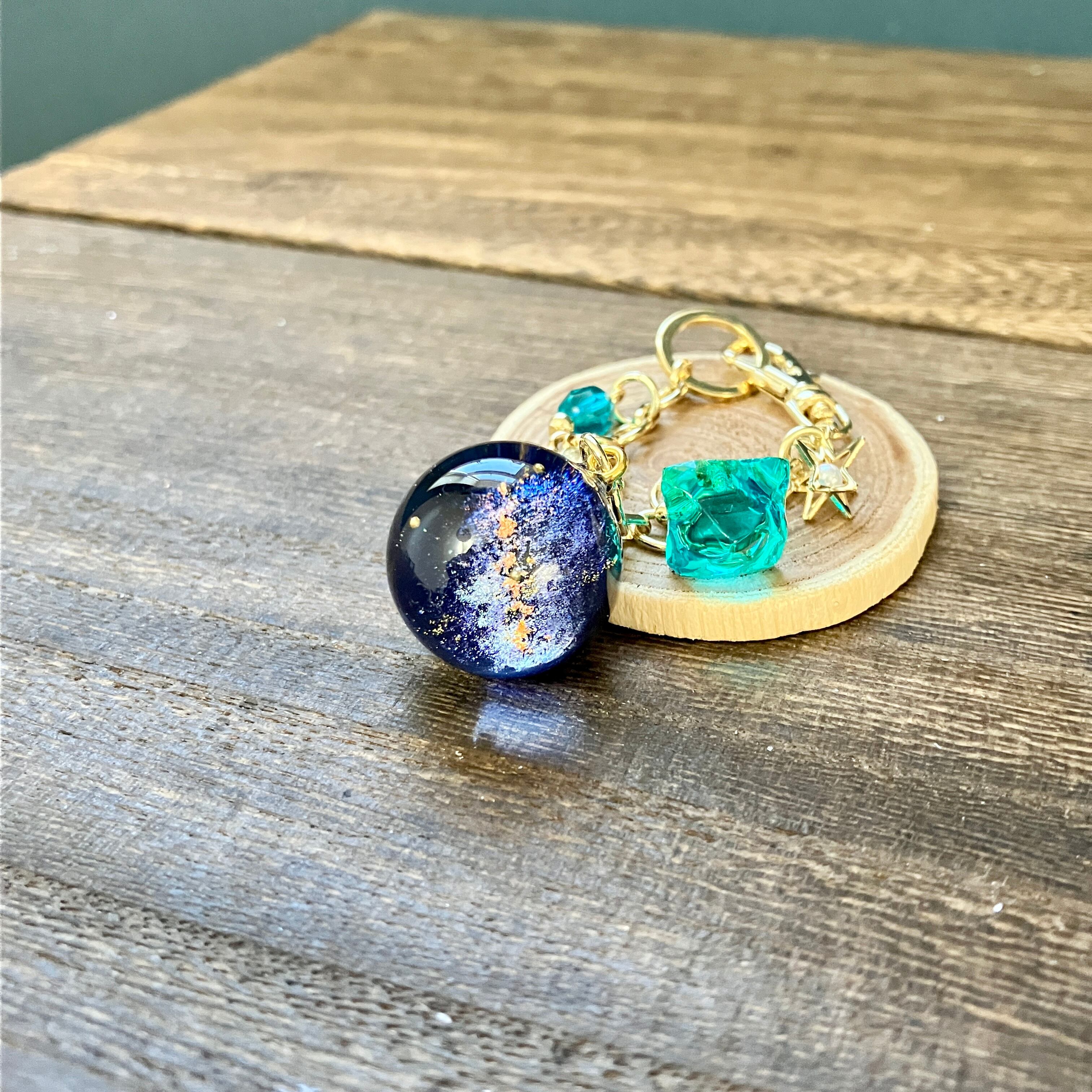 月や星のチャームと鉱石のモチーフを組み合わせて天体がお好きな方にぴったりの作品に仕上がりました(^^)