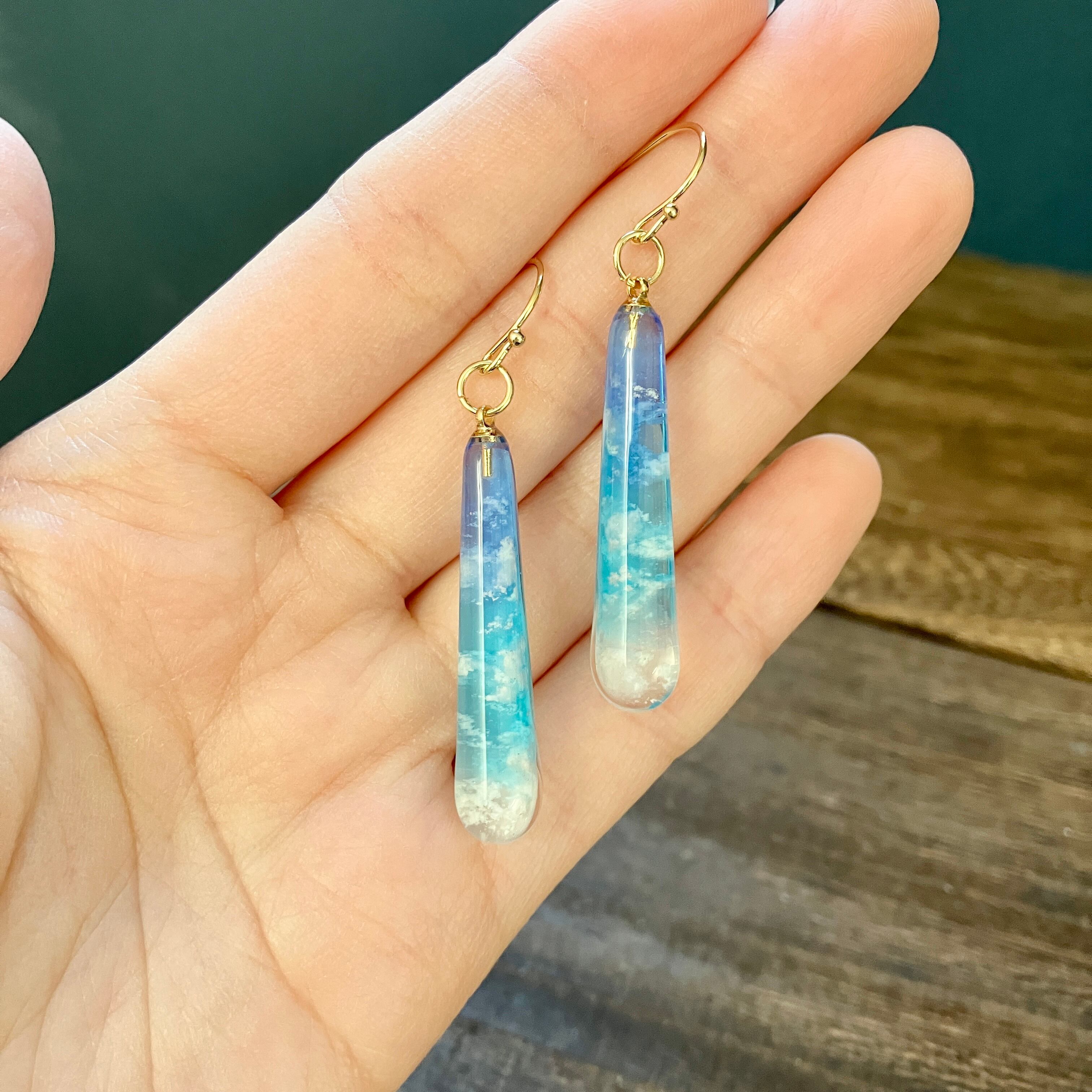 少し訳ありドロップピアス 青空