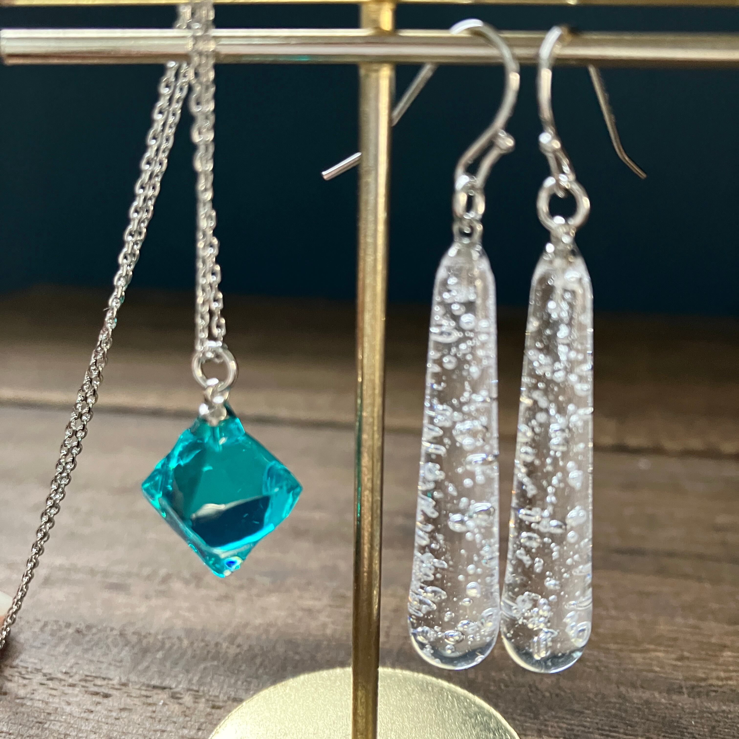 ドロップピアスと鉱石ネックレス 海のかけら
